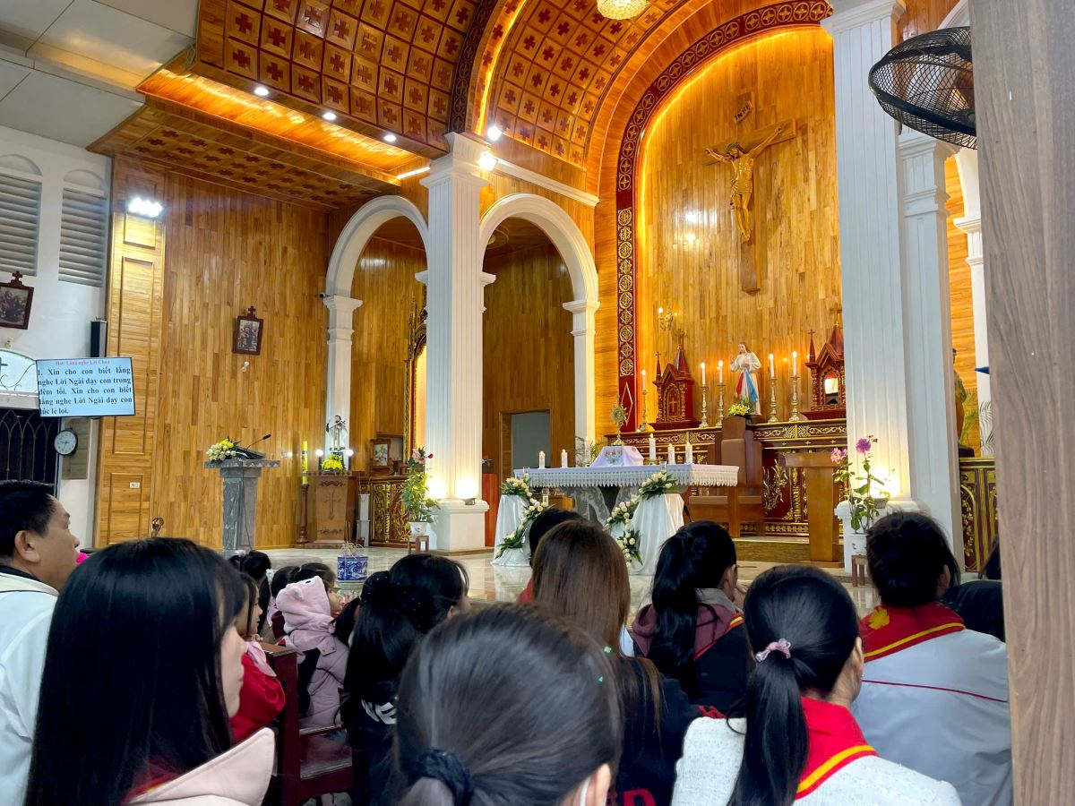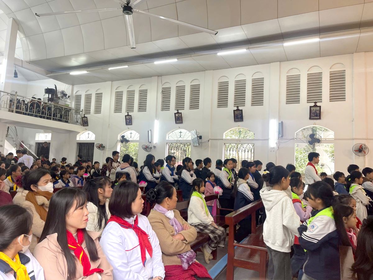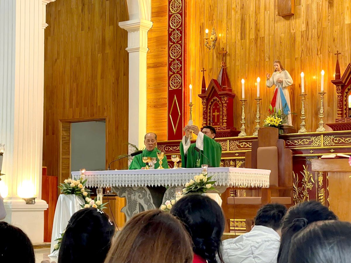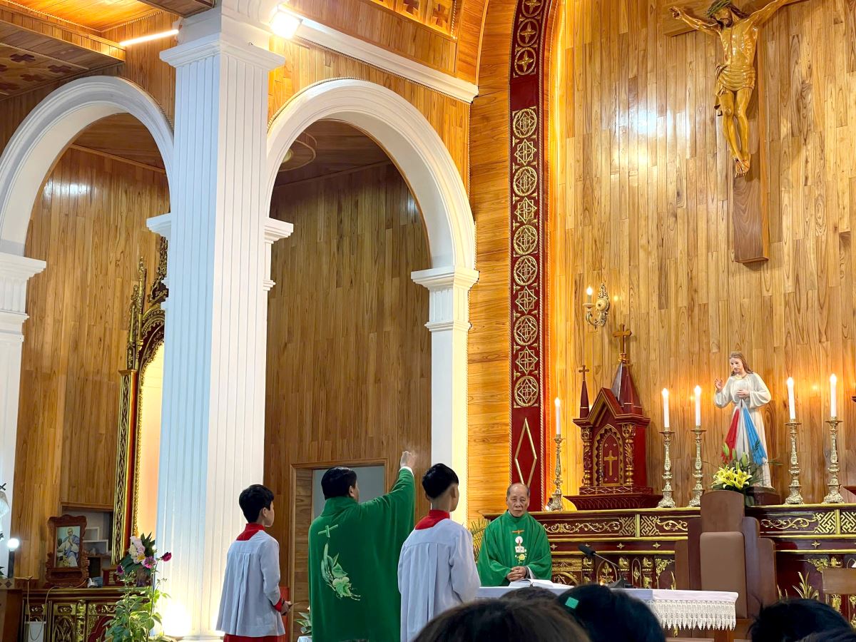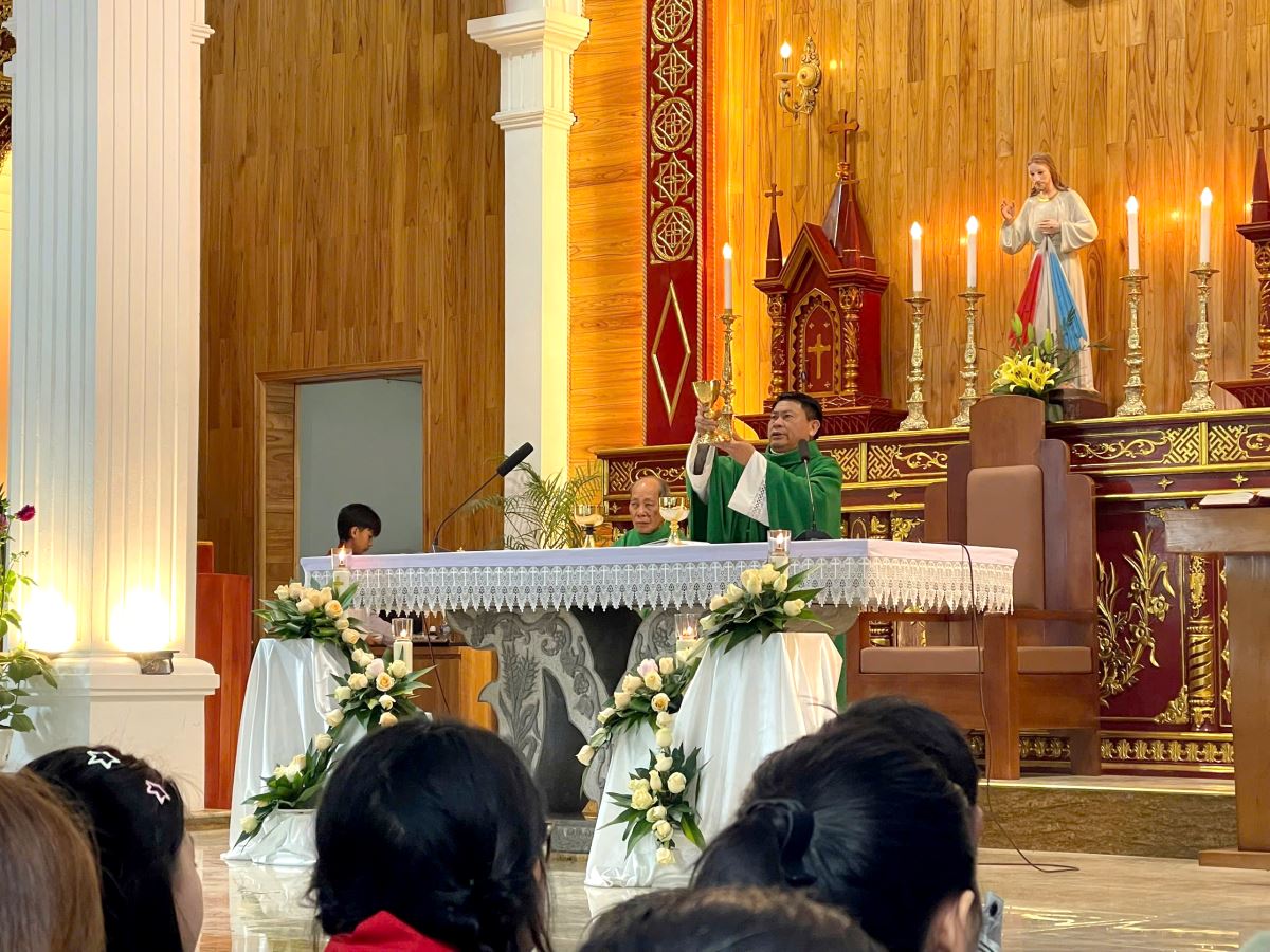 Cao điểm của ngày chầu là Thánh lễ đồng tế lúc 10g15, do Cha xứ Giuse Nguyễn Văn Ninh chủ sự. Đồng tế với ngài có Cha cố Giuse Nguyễn Thái Hà, cùng sự hiện diện hiệp thông của quý tu sĩ và đông đảo tín hữu đến từ các giáo xứ, giáo họ lân cận.