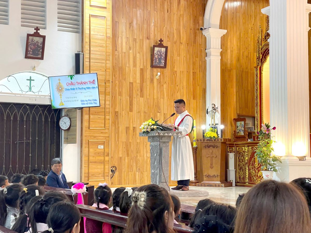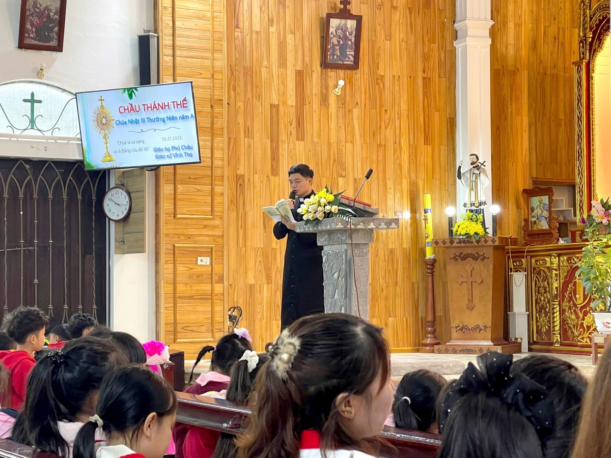 Trong bài giảng, Cha xứ Giuse giúp cộng đoàn đào sâu sứ điệp Tin Mừng Chúa nhật III Thường niên A với lời mời gọi: “Hãy sám hối, vì Nước Trời đã đến gần.” Ngài mời gọi mỗi người hoán cải đời sống, canh tân tâm hồn để đến gần Chúa hơn. Nhân ngày Chúa nhật Lời Chúa, Cha xứ cũng tha thiết khuyến khích cộng đoàn siêng năng đọc, suy niệm và sống Lời Chúa mỗi ngày, để Lời Chúa sinh hoa trái trong đời sống đức tin.
