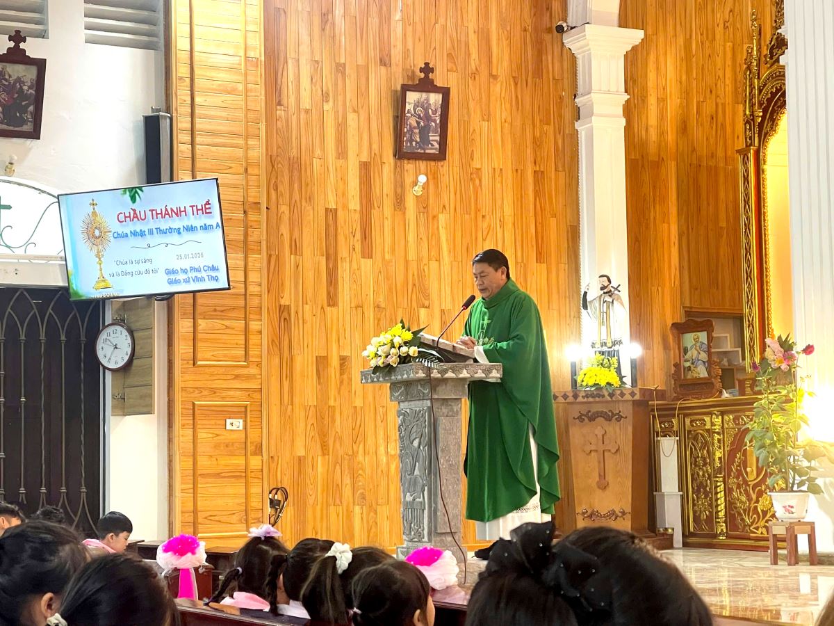 WGPHH - Chúa nhật III Thường niên năm A, ngày 25/01/2026, giáo họ Phú Châu – giáo xứ Vĩnh Thọ đã long trọng tổ chức Ngày Chầu Thánh Thể thay mặt Giáo phận. Ngày chầu là dịp đặc biệt để cộng đoàn dân Chúa quy tụ bên Chúa Giê-su Thánh Thể, dâng lên Ngài tâm tình tạ ơn, cầu nguyện và hiệp thông trong niềm vui chung của giáo họ.