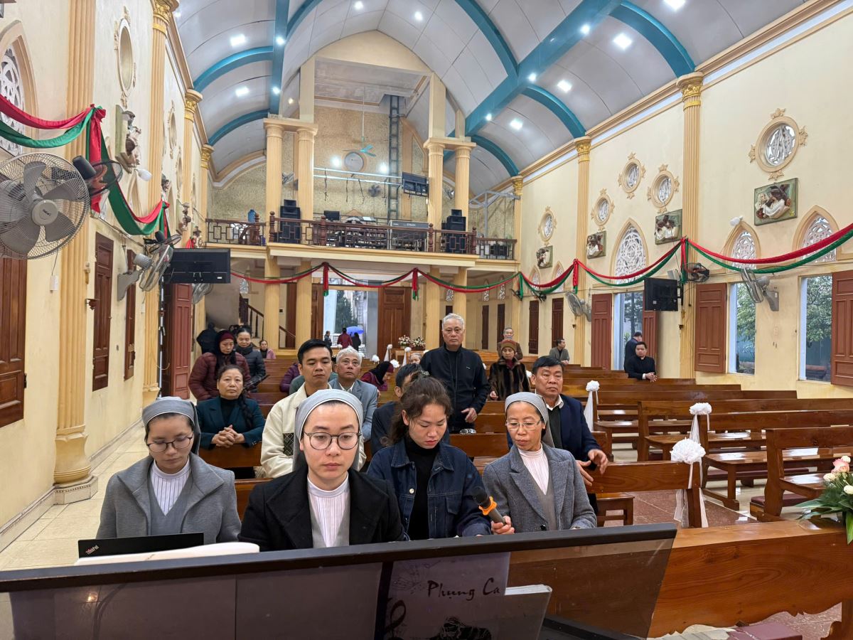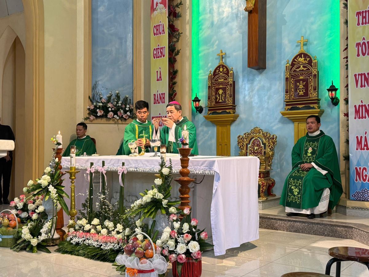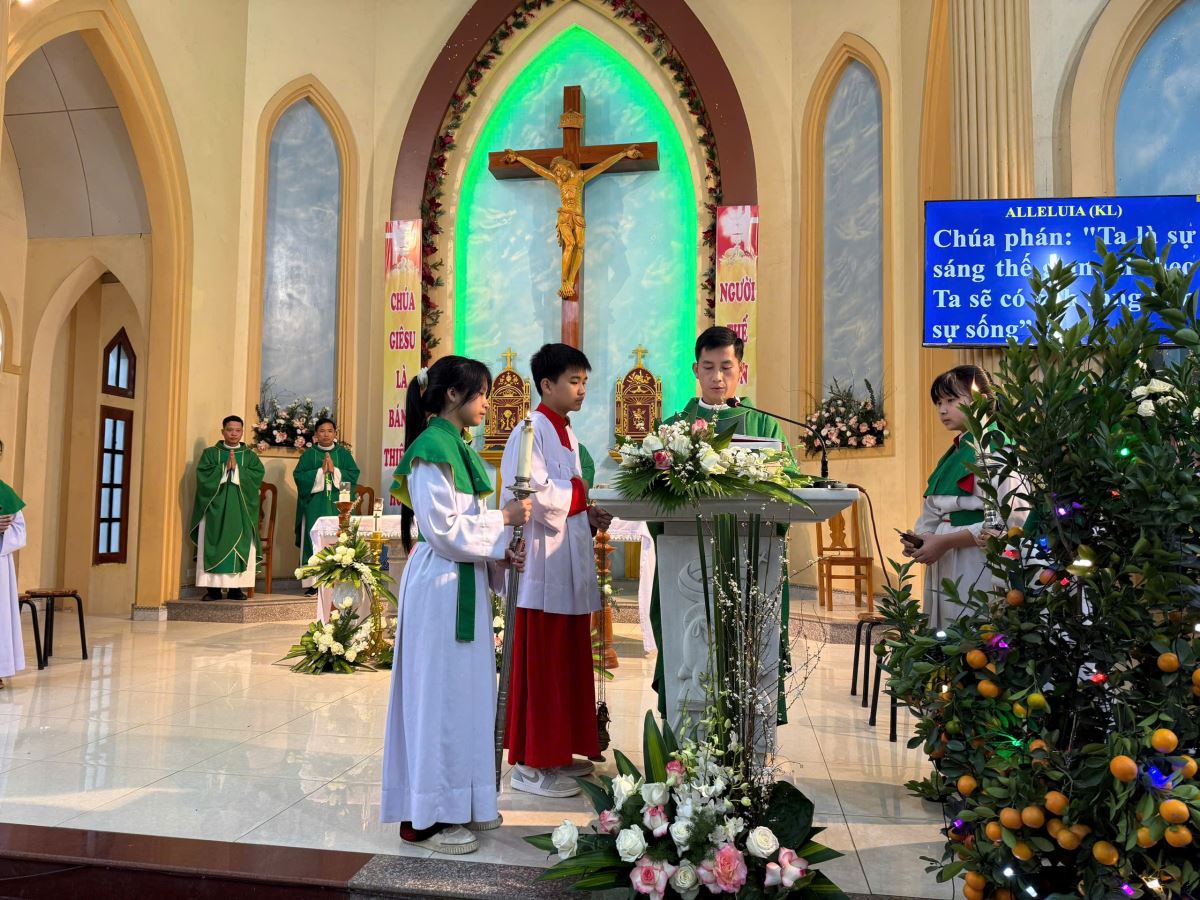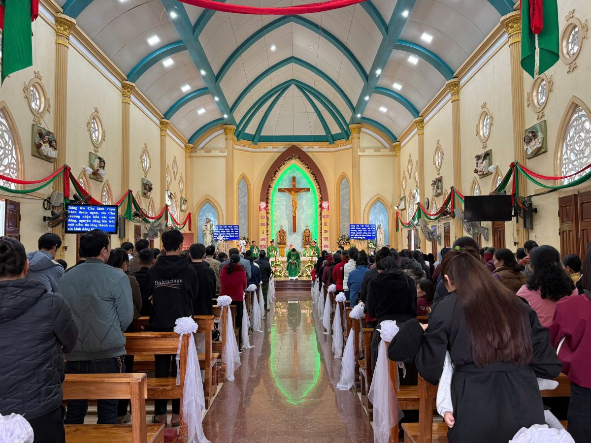 Kết thúc giờ chầu chung, vào lúc 10g00, Thánh lễ Chúa nhật V Thường Niên được cử hành trọng thể do Đức cha Đaminh Hoàng Minh Tiến chủ sự. Đồng tế với ngài có cha xứ Giuse, quý cha phó và quý cha đến từ Giáo phận Lạng Sơn.