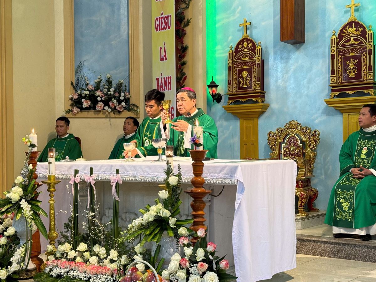 Mở đầu Thánh lễ, Đức cha mời gọi cộng đoàn dâng lời tạ ơn Thiên Chúa vì hồng ân được quy tụ nơi đây trong ngày chầu lượt, đồng thời tạ ơn Chúa vì muôn ơn lành đã ban cho cộng đoàn trong suốt năm qua. Ngài cũng mời gọi mọi người lắng nghe và thực hành Lời Chúa, để mỗi người trở nên “muối cho đời và ánh sáng cho trần gian”.