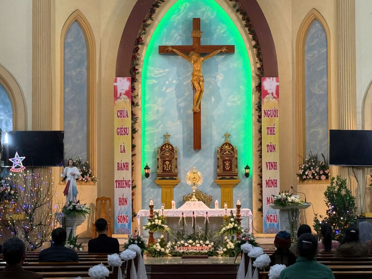 WGPHH - Sáng Chúa nhật V Thường niên năm A, ngày 08/02/2026, tại giáo họ Tân Quang, cộng đoàn dân Chúa đã long trọng cử hành ngày Chầu Thánh Thể thay mặt Giáo phận, đồng thời hiệp dâng Thánh lễ Chúa nhật V Thường Niên trong bầu khí trang nghiêm và sốt sắng. Gác lại những công việc bộn bề của những ngày cuối năm, cộng đoàn quy tụ bên Chúa Giê-su Thánh Thể với tâm tình tạ ơn và khát mong kín múc nguồn ân sủng, bình an. Trước đó, trong ba ngày chầu tam nhật, các hội đoàn trong giáo xứ đã luân phiên chầu Thánh Thể trước Thánh lễ mỗi ngày, góp phần chuẩn bị thiêng liêng cho ngày chầu lượt.