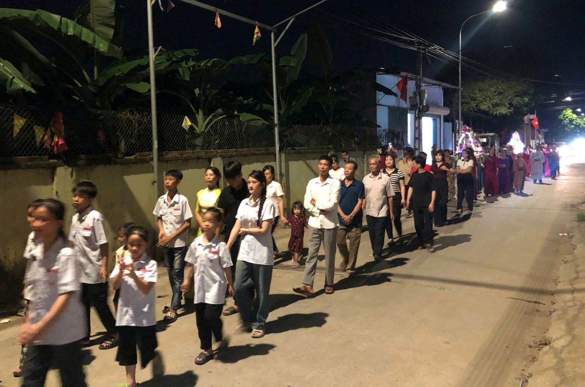 cuộc kiệu hoa kính Đức Mẹ quanh làng, với sự tham dự đông đảo của bà con trong giáo họ, đại diện từ các giáo họ khác trong toàn giáo xứ và có nhiều anh chị em tôn giáo bạn cũng đi rước cùng.