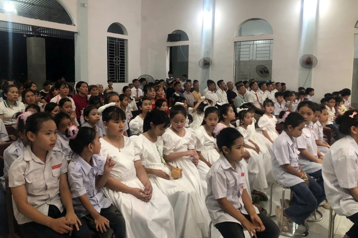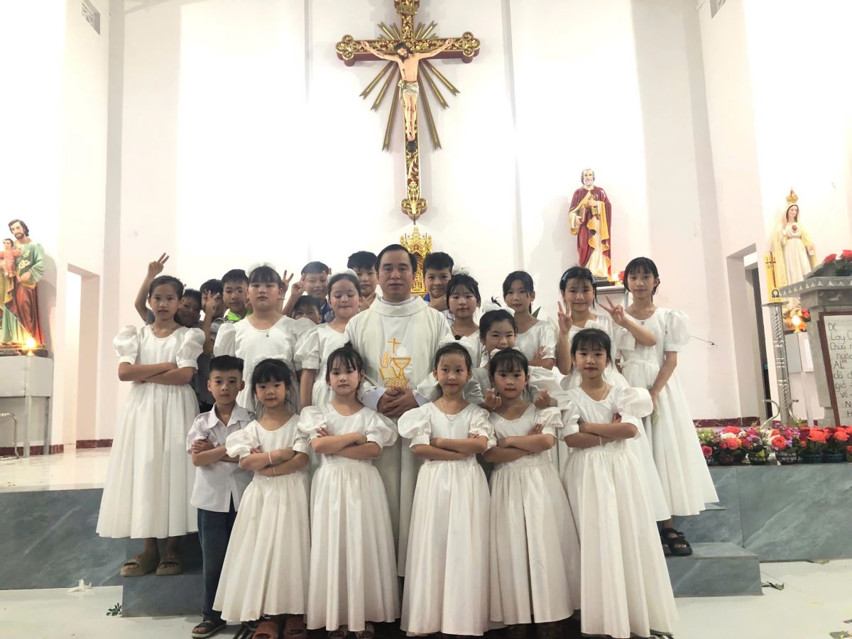 Sau cuộc rước kiệu quanh làng, đoàn rước trở về nhà thờ hiệp ý cùng các em thiếu nhi