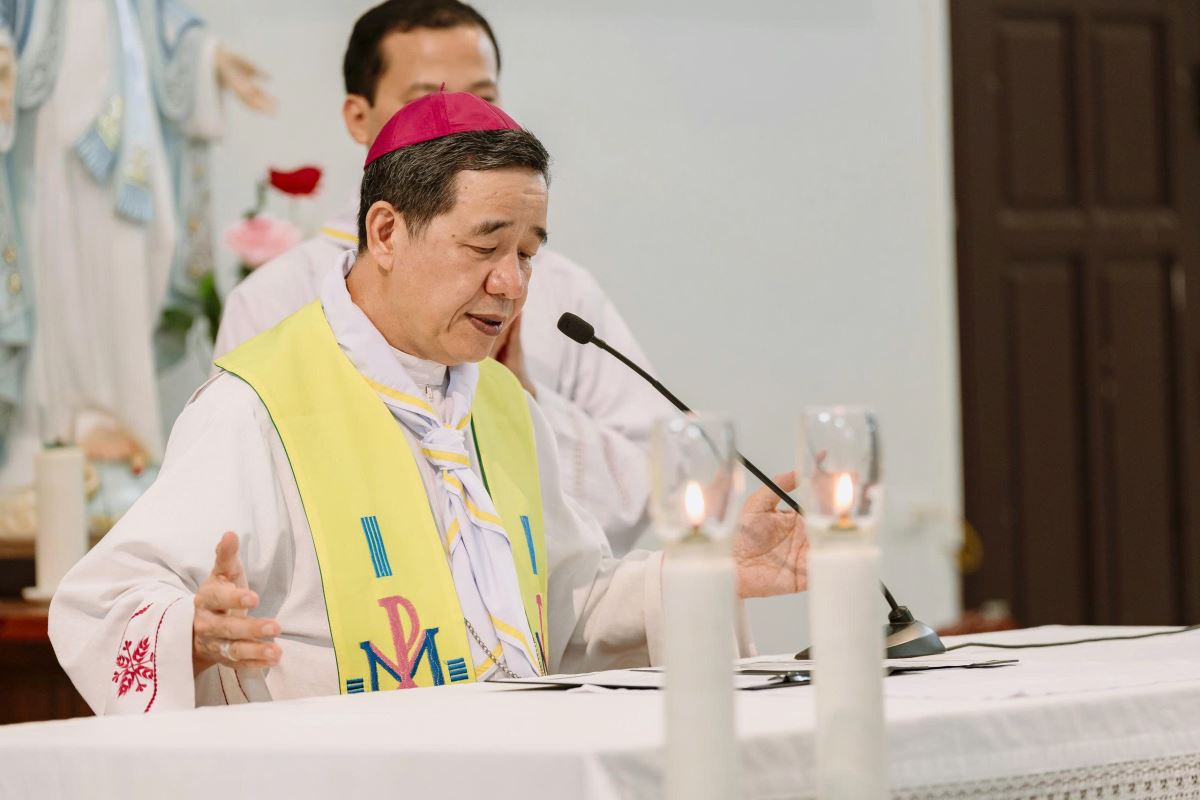 Tiếp đó, Đức cha đã chủ tế Thánh lễ cầu cho việc Loan báo Tin Mừng cho các dân tộc, bế mạc khóa huấn luyện. Đức cha nhắn nhủ các sa mạc sinh lưu tâm để huấn luyện các em thiếu nhi thành những người tông đồ biết loan báo Tin Mừng của Chúa cho những người khác.