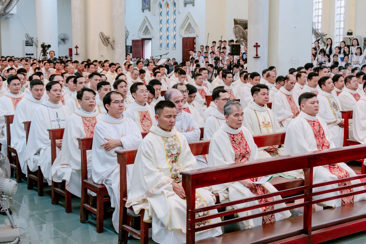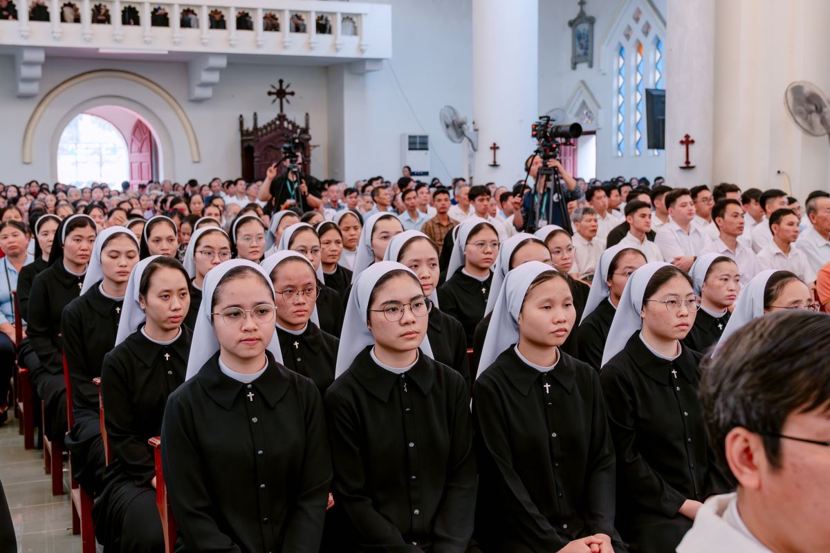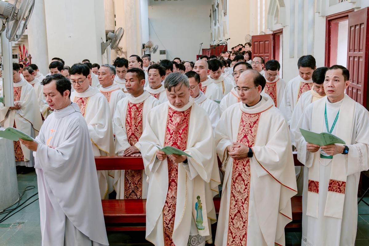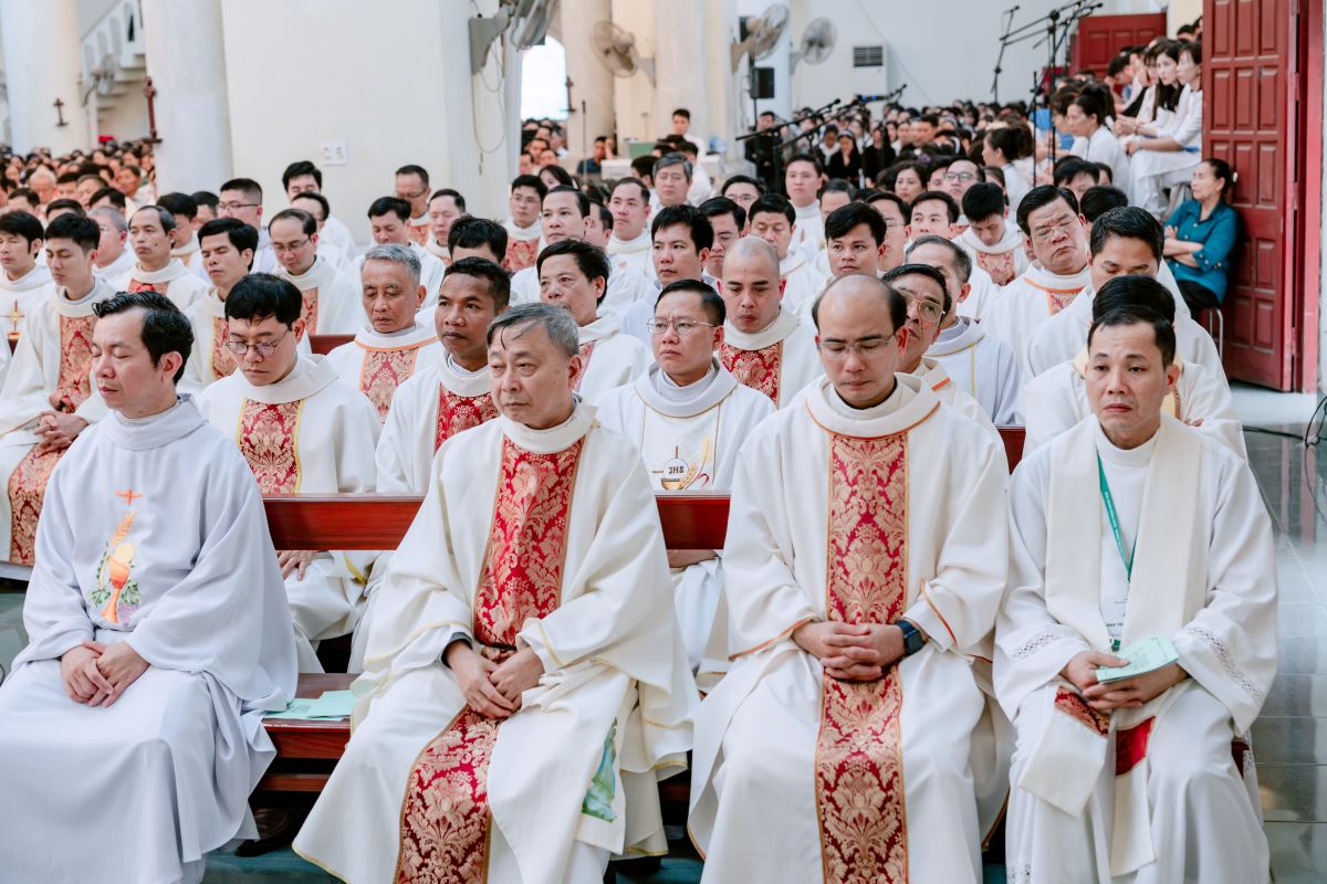 Ngay từ sáng sớm, khuôn viên Nhà thờ Chính tòa đã rộn ràng và nhộn nhịp khi đón tiếp các đoàn tín hữu từ khắp các giáo hạt trở về như biểu tượng của sự hiệp nhất: Giáo phận là một gia đình, nơi mọi thành phần dân Chúa gắn kết với nhau như các chi thể hiệp nhất với Đầu là Chúa Kitô. Sự hiệp nhất này chính là dấu chỉ thuộc về Chúa Kitô, như lời Ngài dạy: “Cứ dấu này mà mọi người nhận biết anh em là môn đệ Thầy: là anh em có lòng yêu thương nhau.” (Ga 13,34)