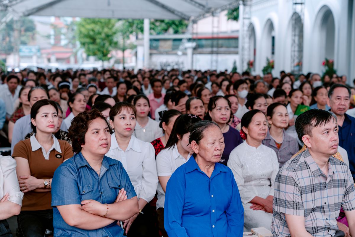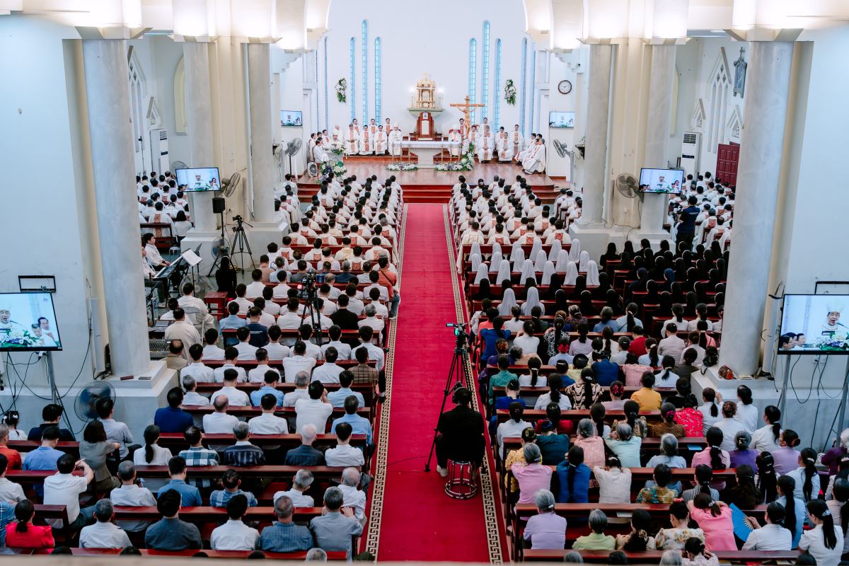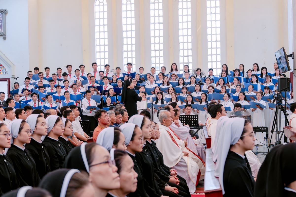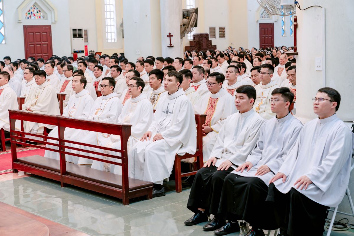 Ngay từ sáng sớm, khuôn viên Nhà thờ Chính tòa đã rộn ràng và nhộn nhịp khi đón tiếp các đoàn tín hữu từ khắp các giáo hạt trở về như biểu tượng của sự hiệp nhất: Giáo phận là một gia đình, nơi mọi thành phần dân Chúa gắn kết với nhau như các chi thể hiệp nhất với Đầu là Chúa Kitô. Sự hiệp nhất này chính là dấu chỉ thuộc về Chúa Kitô, như lời Ngài dạy: “Cứ dấu này mà mọi người nhận biết anh em là môn đệ Thầy: là anh em có lòng yêu thương nhau.” (Ga 13,34)