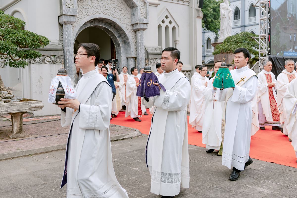 Thánh lễ kết thúc lúc 10g05 với phép lành trọng thể dành cho các tín hữu tham dự Thánh Lễ và nghi thức kiệu Dầu vào nhà mục vụ giáo xứ trong niềm hân hoan của toàn thể cộng đoàn. Những bình Dầu mới là biểu tượng sống động của ân sủng, của sự tiếp nối sứ mạng cứu độ giữa lòng Giáo hội hôm nay. Từ Nhà thờ Chính tòa, các linh mục mang theo Dầu Thánh trở về với từng giáo xứ, giáo họ, như mang theo chính sức sống của Chúa Phục Sinh đến với đoàn chiên được trao phó. Và nơi đó, qua từng bí tích, từng cử hành, từng cuộc gặp gỡ, hương thơm của Dầu Thánh sẽ tiếp tục lan tỏa âm thầm nhưng mạnh mẽ để chữa lành, thánh hóa và làm mới lại đời sống đức tin của Dân Chúa.