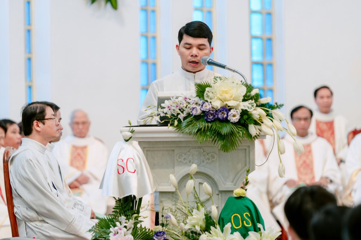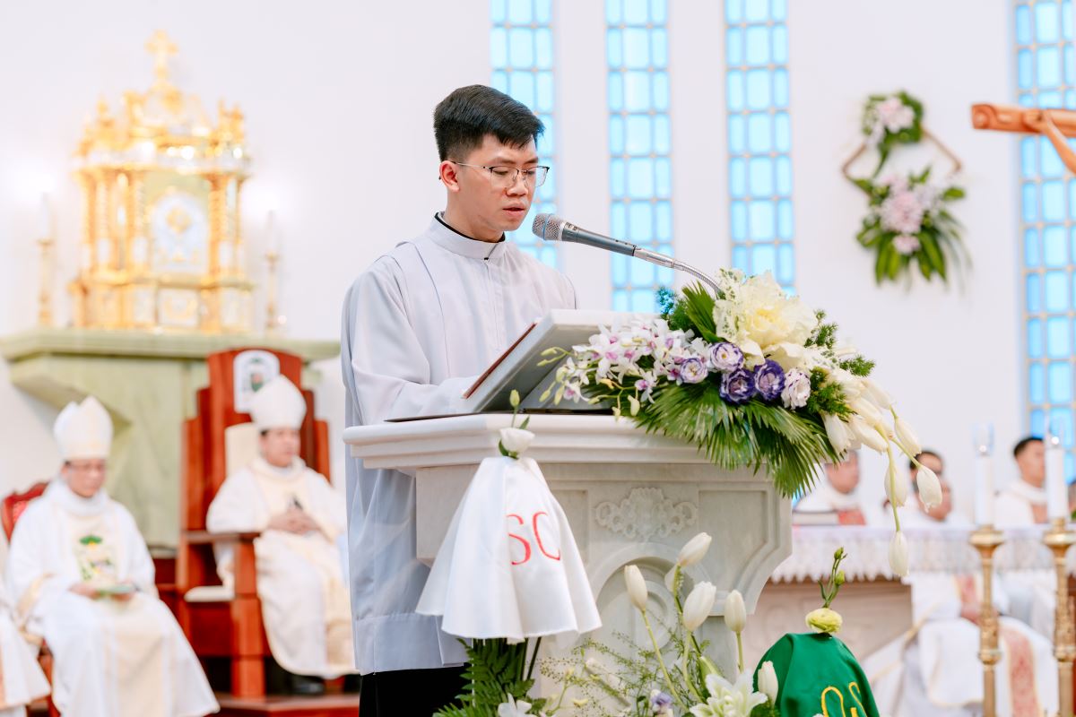 Trong phần chia sẻ Lời Chúa, Đức cha Đaminh Hoàng Minh Tiến đã đào sâu ý nghĩa của việc xức dầu, khởi đi từ lời tuyên bố của Chúa Giêsu tại hội đường Nadarét: “Thần Khí Chúa ngự trên tôi, vì Chúa đã xức dầu tấn phong tôi” (Lc 4,18). Từ đó, Đức Cha nhấn mạnh: việc xức dầu không chỉ là nghi thức bên ngoài, nhưng là một thực tại thiêng liêng biến đổi con người, thánh hiến họ thuộc trọn về Thiên Chúa.