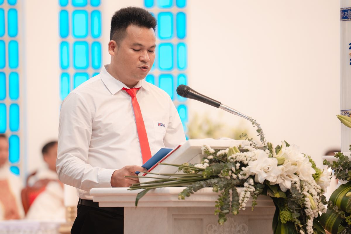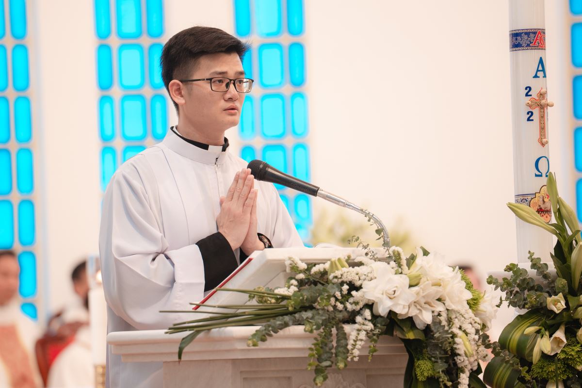Đặc biệt, đây chính là hoa trái của Chúa Thánh Thần, trích dẫn TÔNG HUẤN PASTORES DABO VOBIS VỀ VIỆC ĐÀO TẠO LINH MỤC, Đức cha Đaminh xác tín rằng chính Chúa Thánh Thần là tác nhân chính yếu đào tạo nên các thầy trong suốt những năm tháng theo đuổi ơn gọi tu trì, và sẽ còn tiếp tục hướng dẫn các thầy trong sứ vụ mới. TRUYỀN CHỨC PHÓ TẾ Sau khi công bố Tin mừng là Nghi thức truyền chức Phó tế gồm ba phần: Nghi thức mở đầu, Đặt tay và lời nguyện phong chức, và Nghi thức diễn nghĩa.