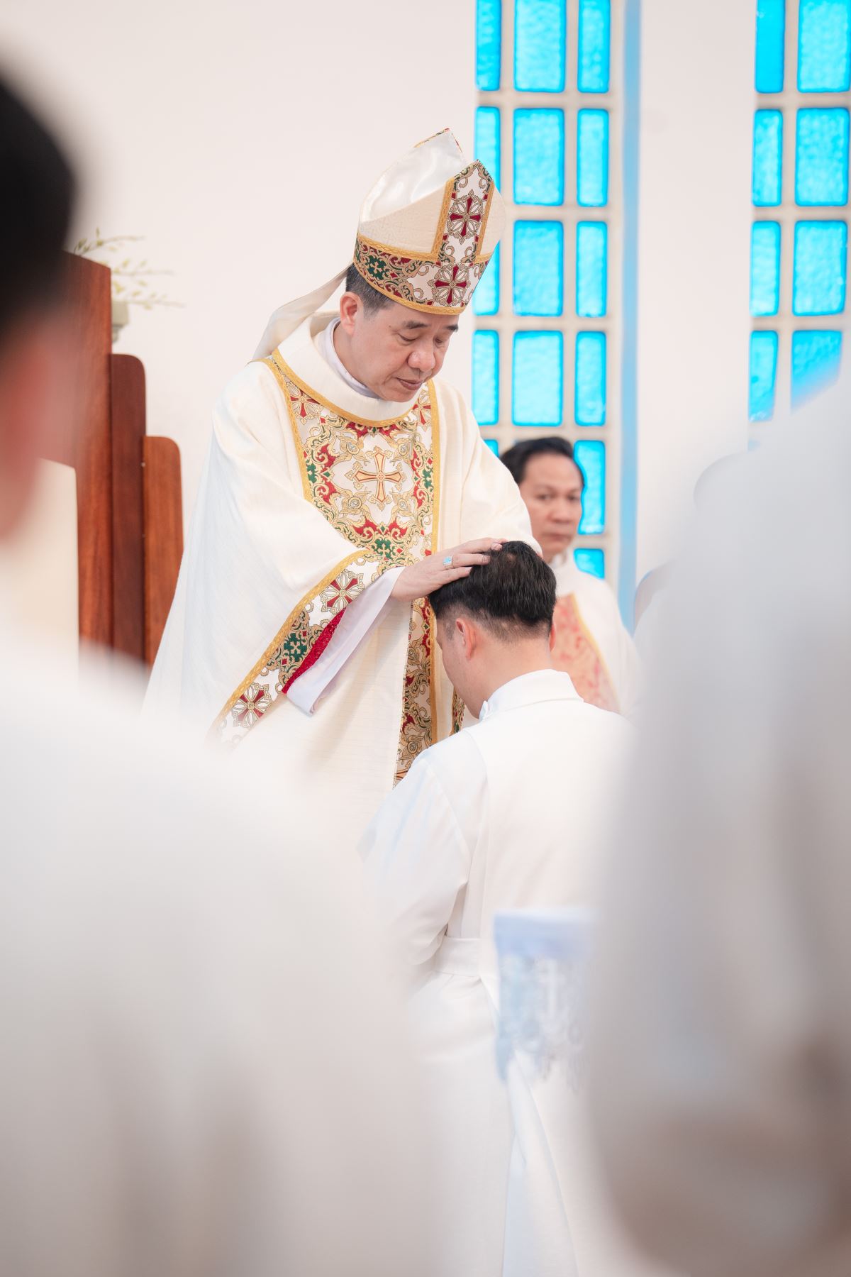 Đây là phần quan trọng nhất trong nghi lễ. Theo truyền thống từ thời các tông đồ, ĐGM thinh lặng đặt tay trên đầu từng tiến chức, với tâm tình nguyện xin ơn Chúa Thánh Thần. Với lời nguyện phong chức mà ĐGM đọc ngay sau đó, các tiến chức chính thức trở thành Phó tế, gia nhập hàng Giáo sĩ của Giáo phận.