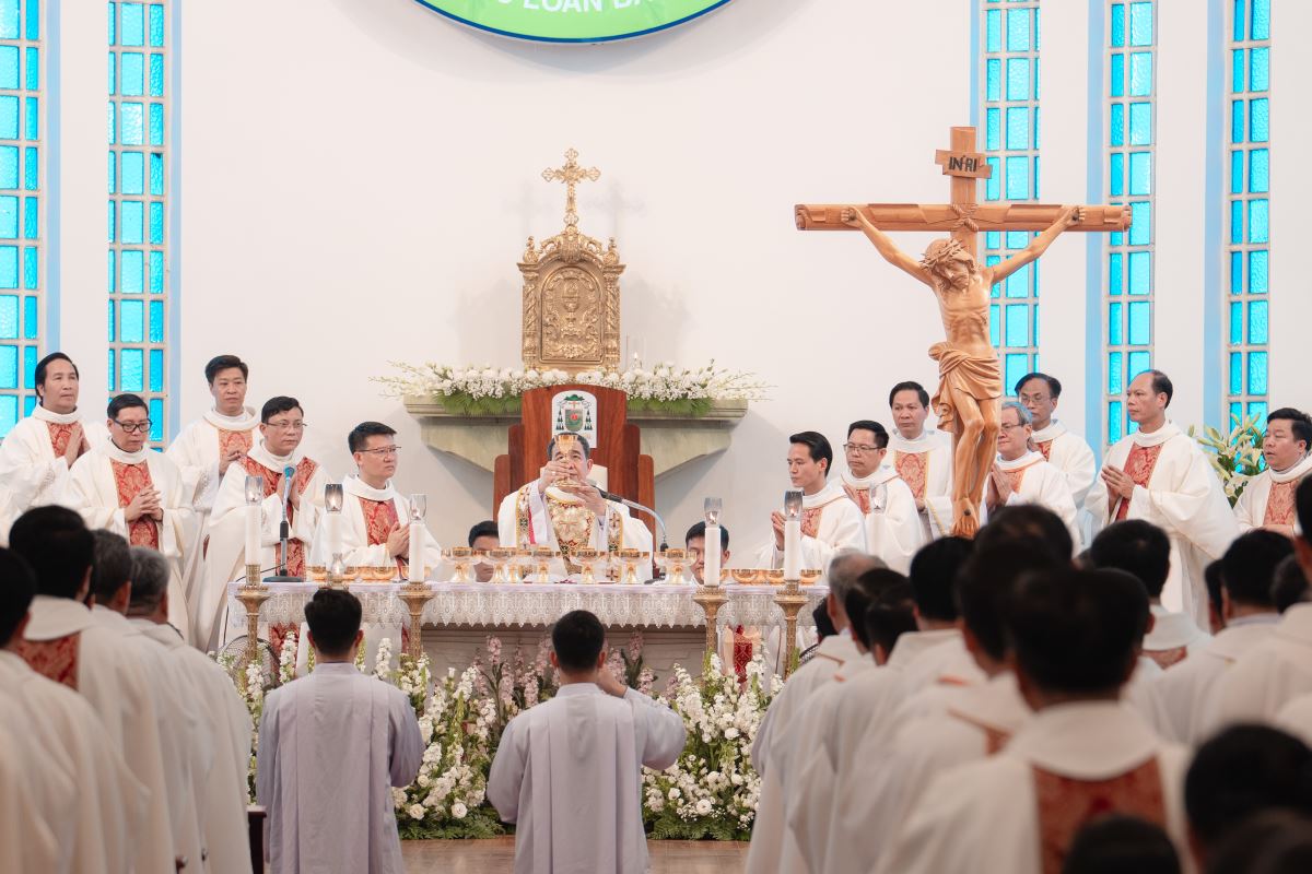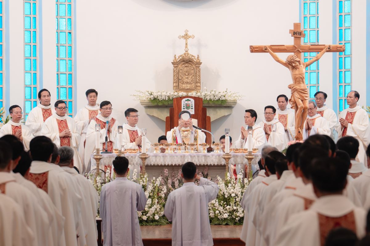 Đức cha Đaminh Hoàng Minh Tiến chủ tế Thánh lễ Quý cha đồng tế | |
