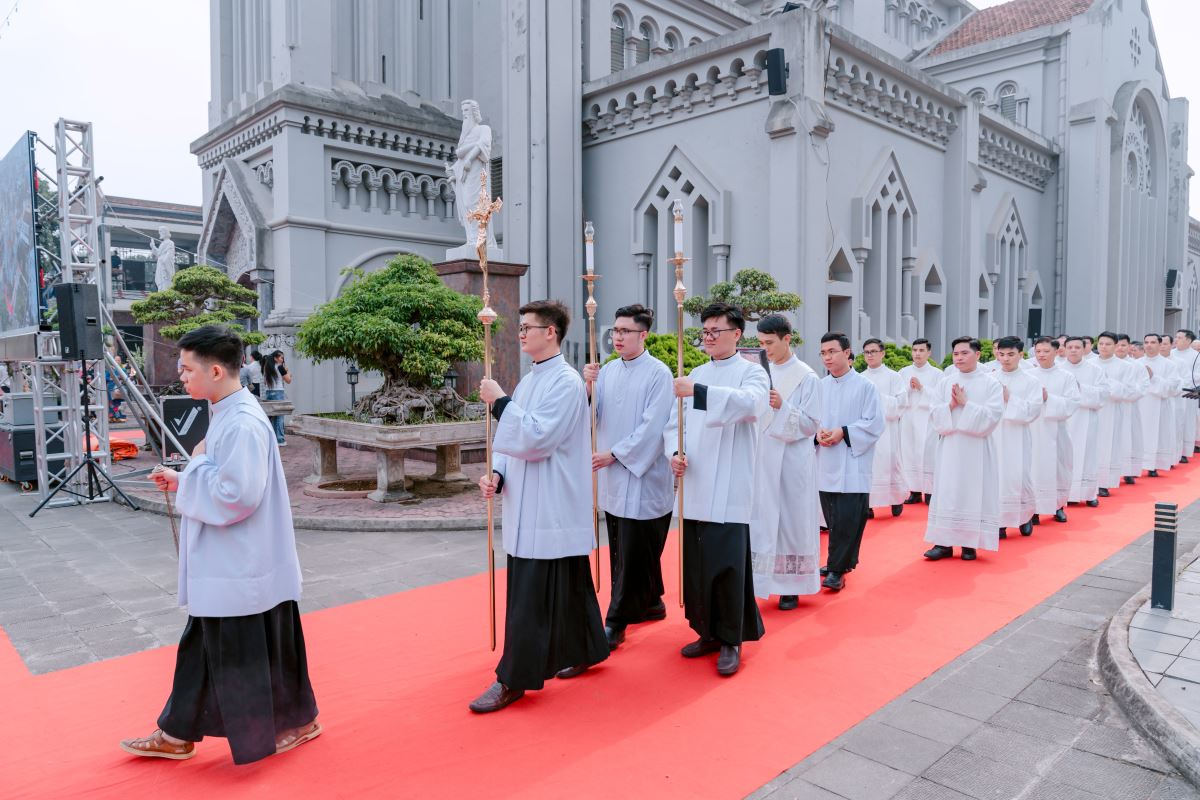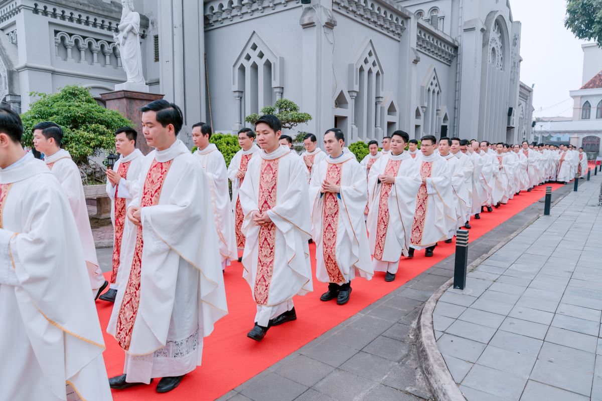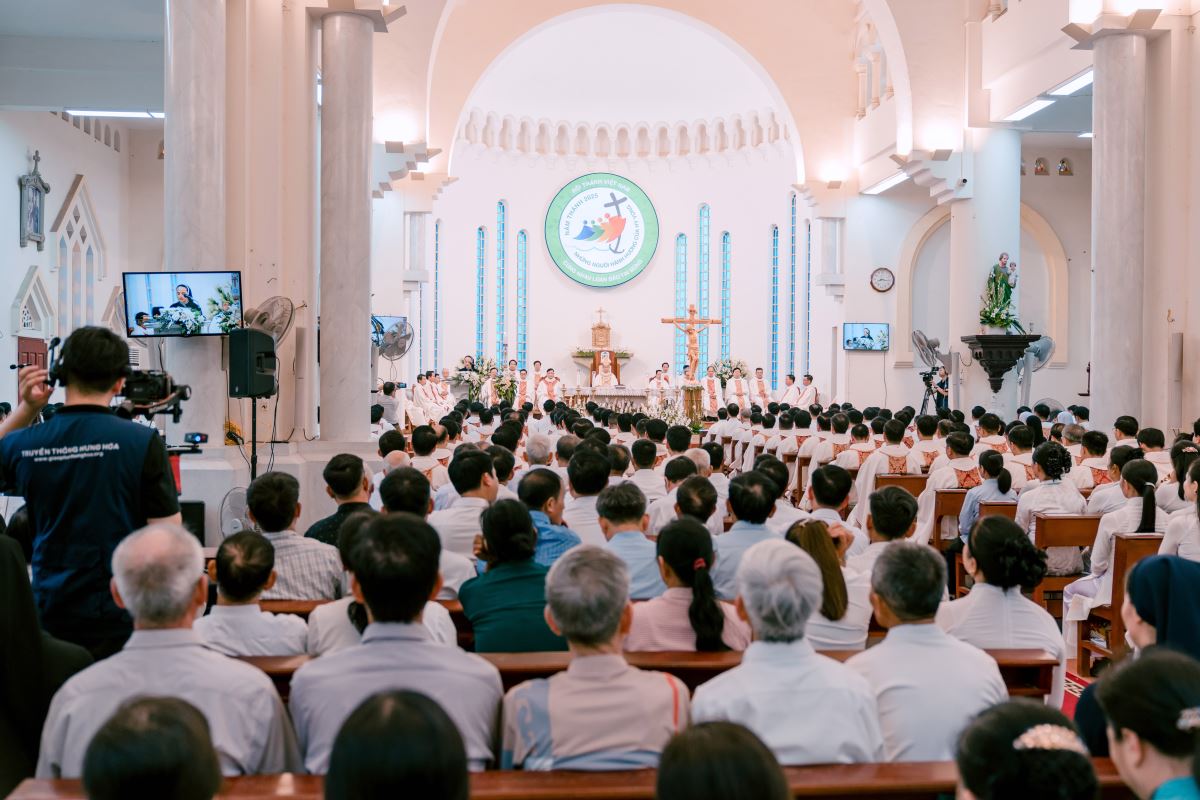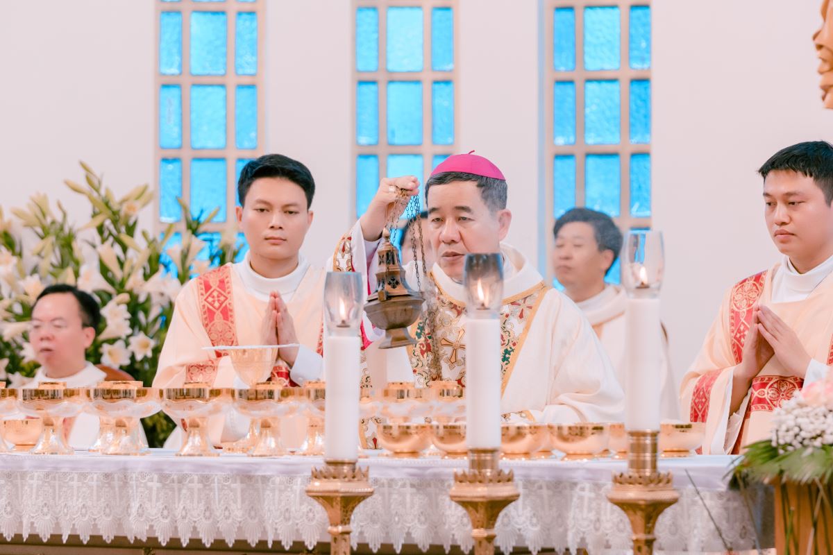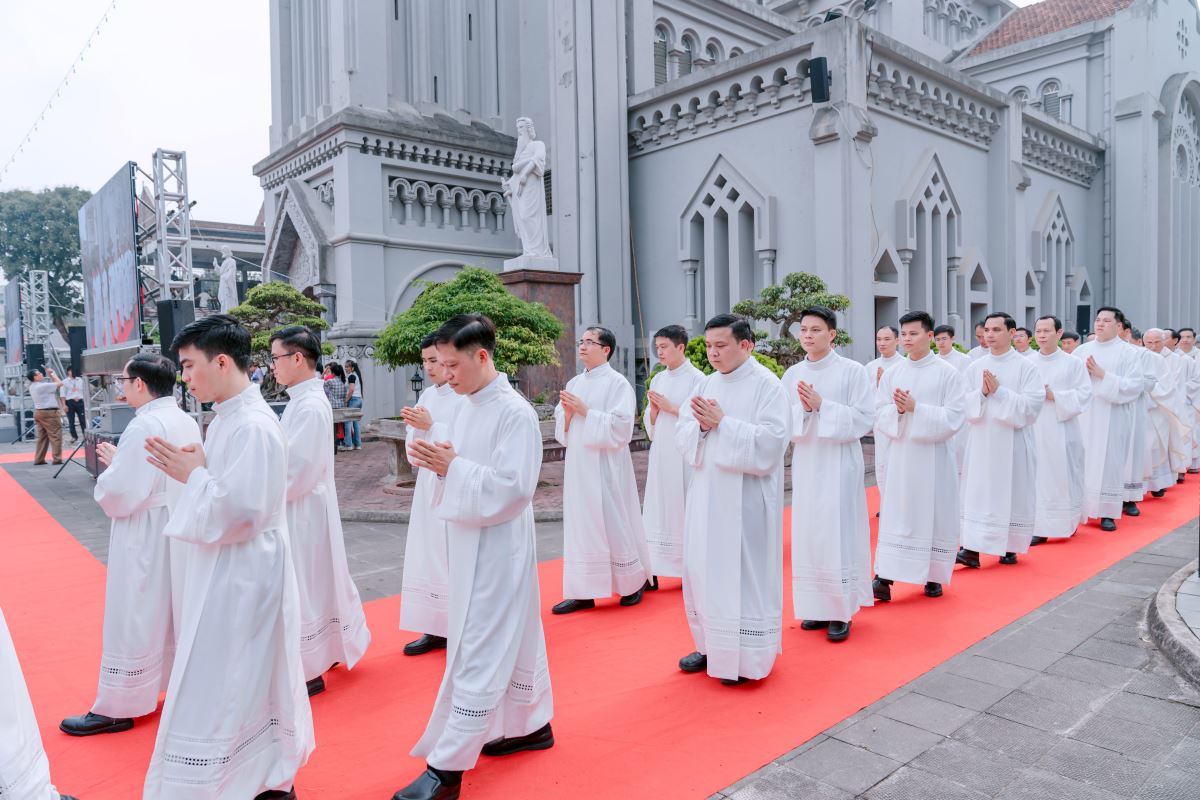 Hiện diện trong thánh lễ, còn có Đức cha phụ tá tân cử Phaolô Nguyễn Quang Đĩnh, các cha giáo, các cha Quản hạt, các linh mục, phó tế trong và ngoài Giáo phận, các tu sĩ nam nữ, chủng sinh, thân nhân của các tiến chức và đông đảo cộng đoàn dân Chúa.