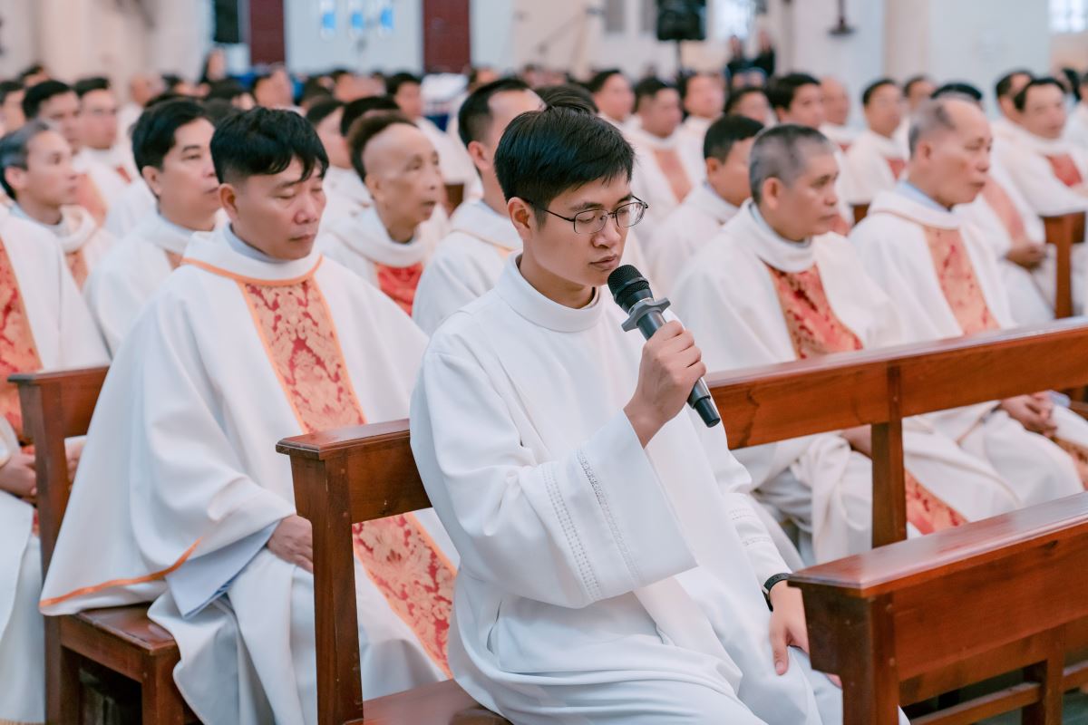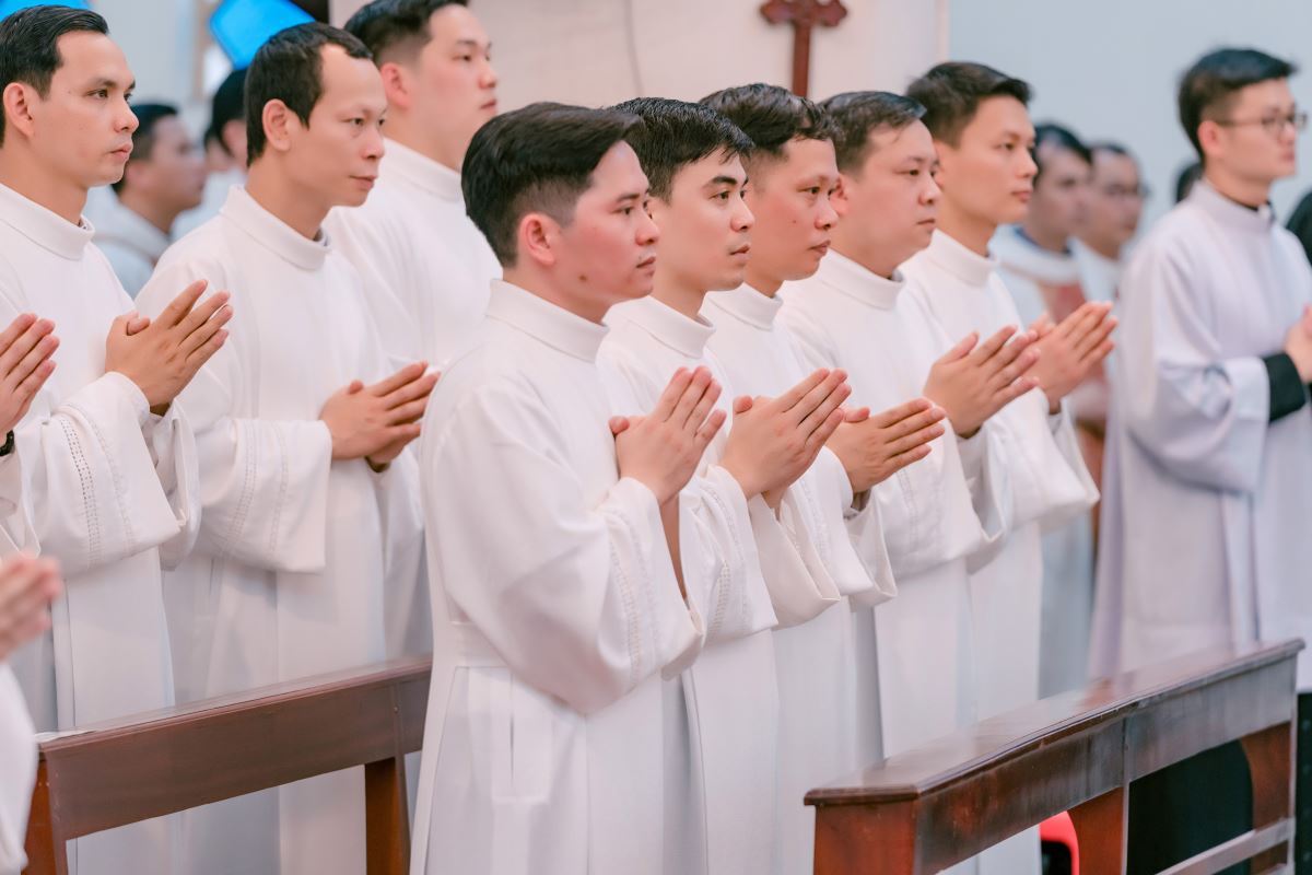 HOA TRÁI CỦA CHÚA THÁNH THẦN Để các tiến chức được lãnh nhận thánh chức Phó tế hôm nay, đó là nhờ việc các thầy đã lắng nghe được tiếng Chúa và sẵn sàng quảng đại đáp lại lời mời gọi làm môn đệ của Ngài. Trong suốt 09 năm qua, các thầy đã không ngừng nỗ lực cố gắng học tập cũng như tu luyện để trở nên giống Chúa Giêsu mục tử nhân lành. Bên cạnh đó, đây cũng là hoa trái của lời cầu nguyện, sự đồng hành của gia đình, thân nhân, ân nhân và bạn bè các tiến chức. Đồng thời, đây chính là thành quả của sự hướng dẫn, đồng hành của những người hữu trách, quý Cha Giám đốc và quý Cha giáo các Đại Chủng viện (ĐCV): ĐCV thánh Giuse Hà Nội, ĐCV Xuân Bích Huế, ĐCV Đức Mẹ Vô Nhiễm Bùi Chu, và ĐCV Xuân Lộc.