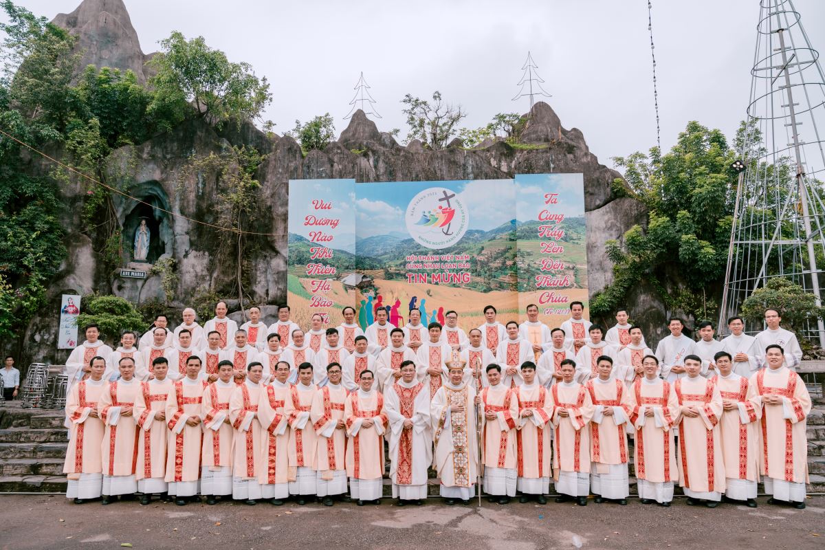 Đức cha, quý cha chụp hình lưu niệm với các tân Phó tế trước Hang đá Hy vọng, với việc lãnh nhận thánh chức Phó tế hôm nay, quý thầy luôn ý thức sống thánh thiện và nhiệt tâm thi hành sứ vụ Chúa đã trao, trở nên những chứng nhân Tin mừng giữa cánh đồng truyền giáo rộng lớn của Giáo phận, và hy vọng một ngày không xa, các thầy sẽ được tiến tới thánh chức linh mục.
