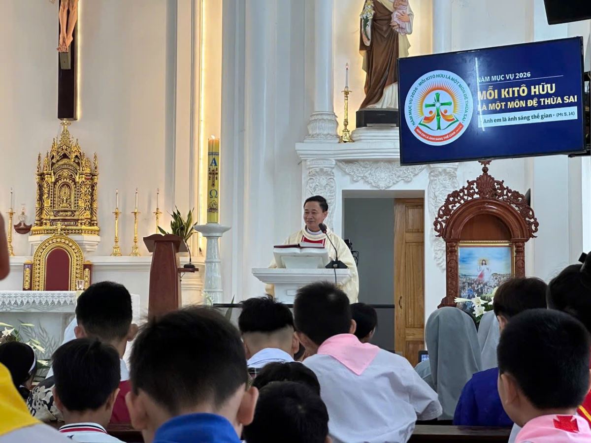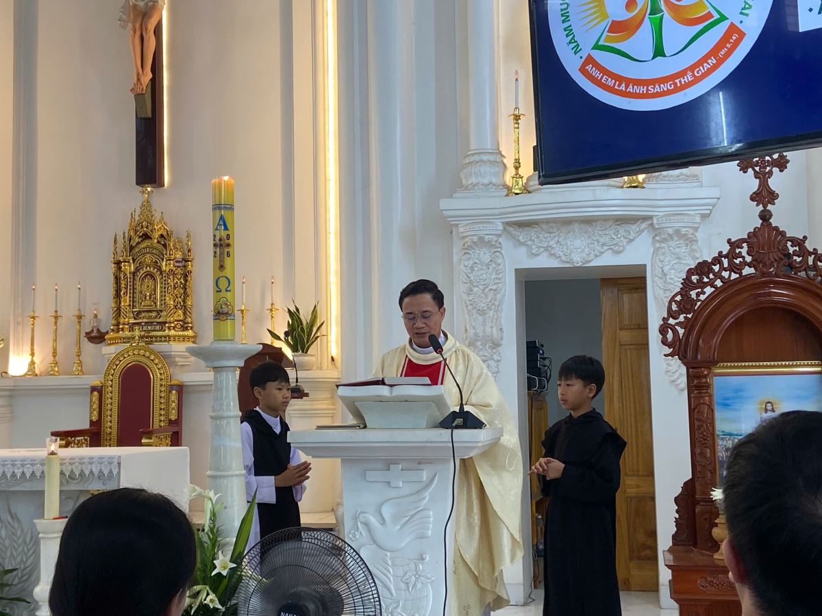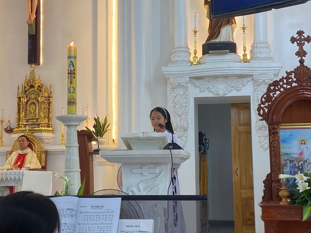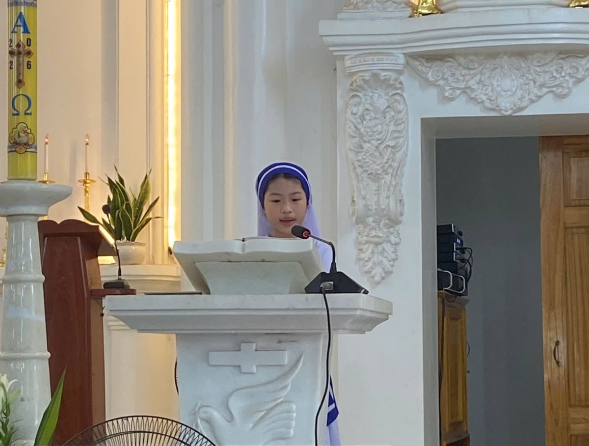 Cách đặc biệt, phần phụng vụ Lời Chúa trong Thánh lễ được đảm nhận bởi chính các “tu sĩ tương lai” là các em thiếu nhi và giới trẻ trong giáo xứ. Từ các bài đọc, lời nguyện giáo dân đến ca vịnh đáp ca, tất cả được cử hành với tâm tình sốt sắng và trang nghiêm, như những hạt giống ơn gọi đang được vun trồng nơi cộng đoàn hôm nay.