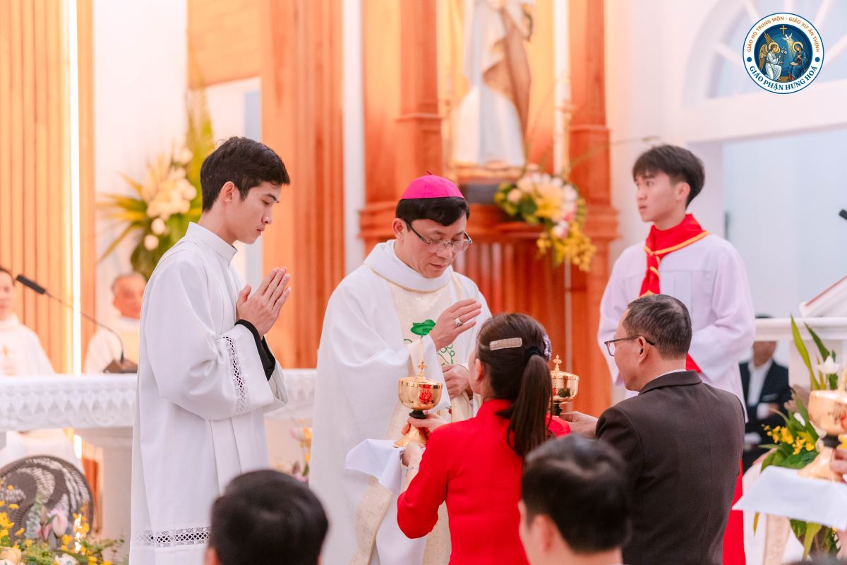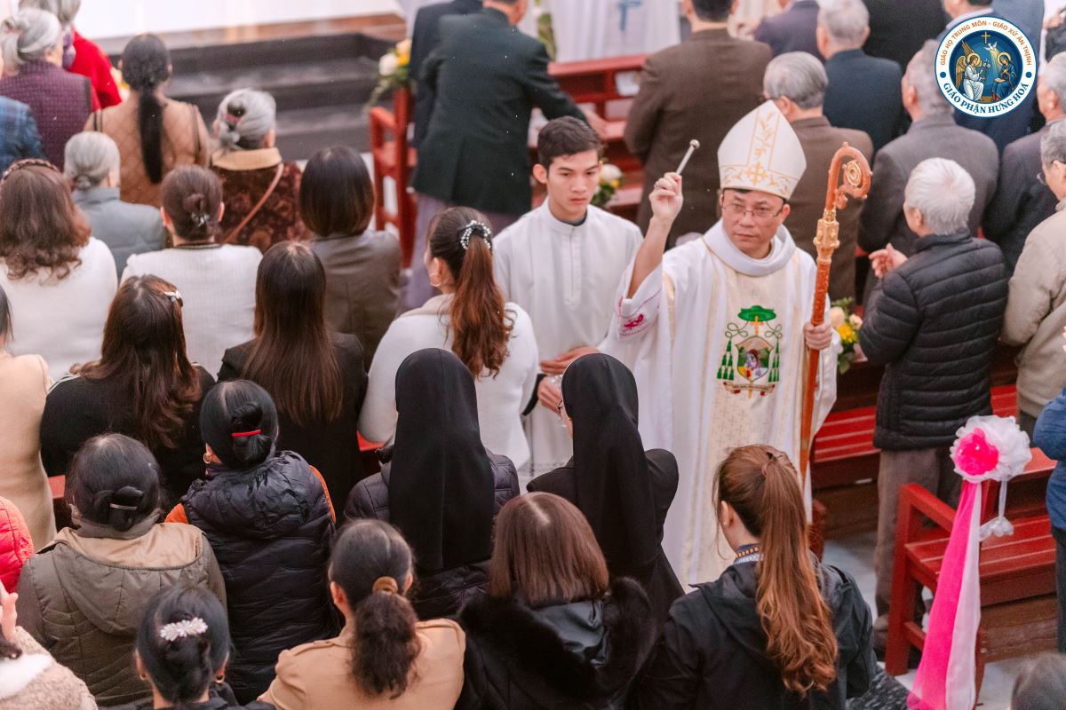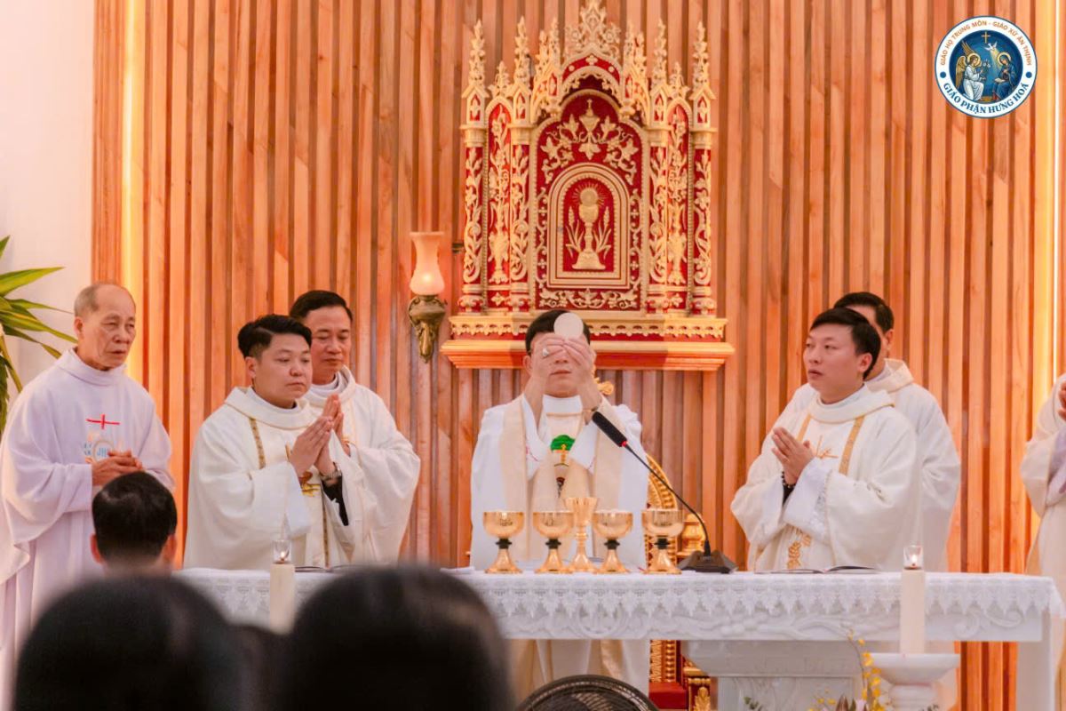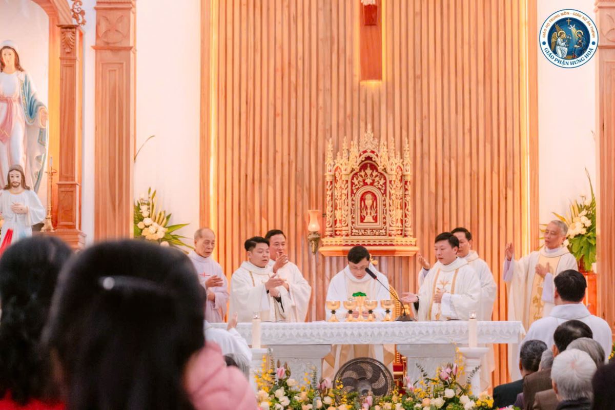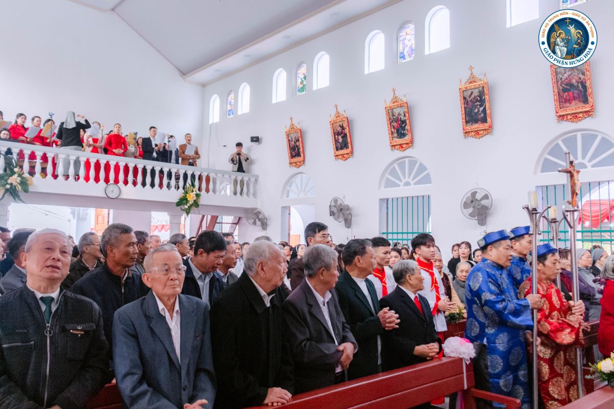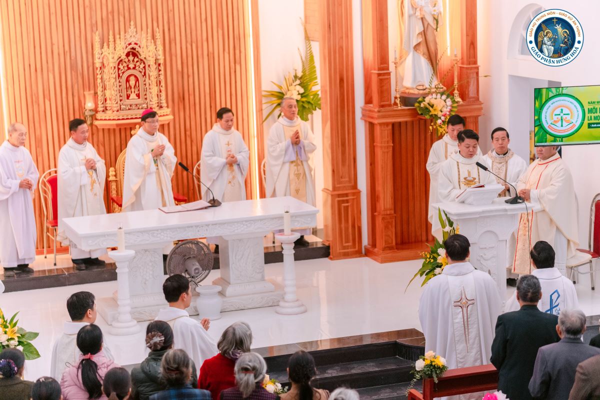Đúng 9g00, Thánh lễ được long trọng cử hành. Đồng tế với Đức Cha có 15 linh mục trong và ngoài Giáo hạt Hà – Tuyên – Hùng, cùng sự hiện diện của quý thầy, quý dì, gần 1.000 giáo dân và quý khách mời. Tất cả cùng hiệp thông trong niềm vui và tâm tình tạ ơn Thiên Chúa của Giáo họ trong ngày trọng đại này.