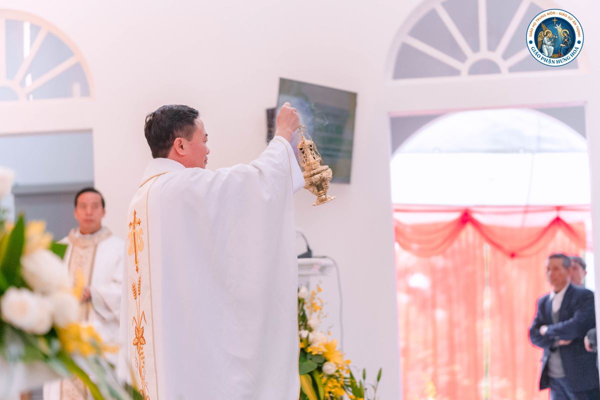 Sau bài giảng, Đức Cha xông hương bàn thờ; cha phó đặc trách Giáo xứ Ân Thịnh Giuse Lâm Văn Việt xông hương đoàn đồng tế, tường nhà thờ và cộng đoàn dân Chúa, tiếp đến là các nghi thức chuẩn bị bàn thờ.