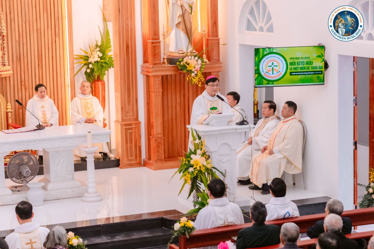 Trong bài giảng, Đức Cha Phaolô đặc biệt nhấn mạnh vai trò và tầm quan trọng của ngôi thánh đường trong đời sống Kitô hữu. Ngài chia sẻ rằng nhà thờ không chỉ là một công trình kiến trúc vật chất, nhưng trước hết là ngôi nhà của Thiên Chúa, nơi cộng đoàn quy tụ để cầu nguyện, cử hành các bí tích và gặp gỡ Chúa trong đời sống đức tin hằng ngày. Từ ngôi thánh đường hữu hình, mỗi tín hữu được mời gọi trở nên những viên đá sống động, cùng nhau xây dựng Hội Thánh bằng đời sống hiệp nhất, yêu thương và làm chứng cho Tin Mừng.