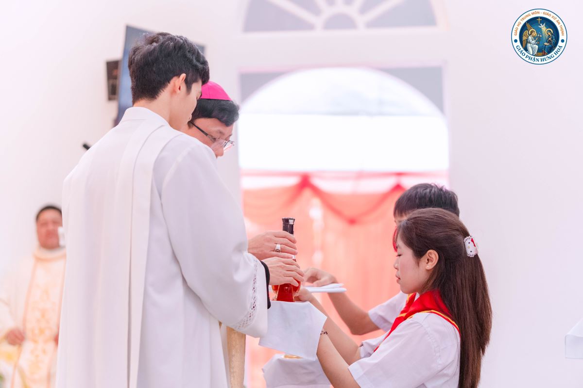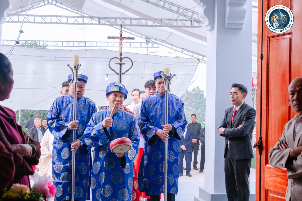 Tiếp đó, Đức Cha cử hành nghi thức làm phép nhà thờ, rảy nước thánh trên bàn thờ, tường nhà thờ và cộng đoàn hiện diện. Sau nghi thức làm phép, cộng đoàn sốt sắng bước vào Phụng vụ Lời Chúa và Phụng vụ Thánh Thể.