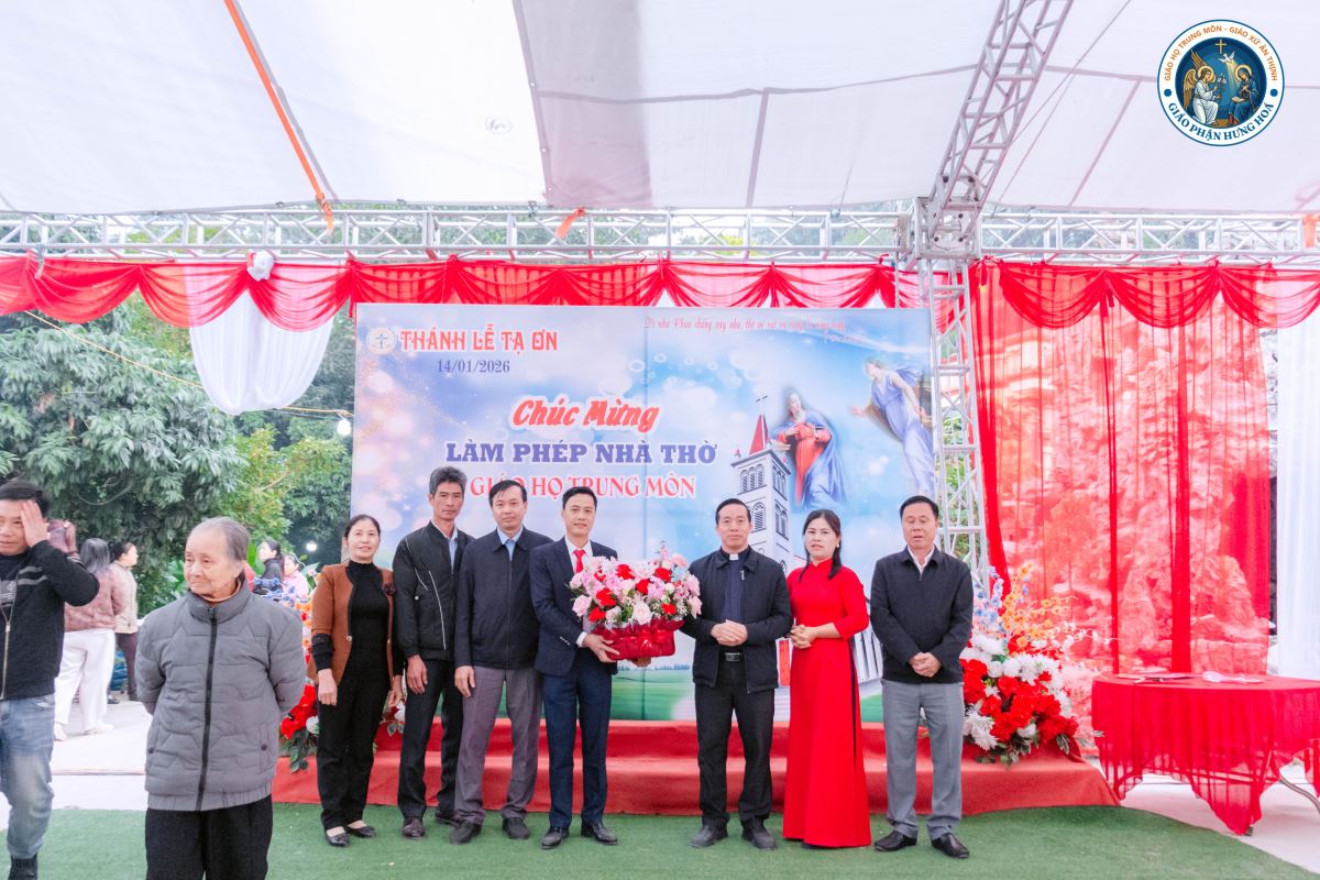 Trước khi kết thúc Thánh lễ, đại diện Ban Hành giáo Giáo họ Trung Môn đã dâng lời tri ân Đức Cha, quý cha, quý tu sĩ, cộng đoàn Dân Chúa, quý khách và đại diện chính quyền địa phương đã hiện diện, cầu nguyện và nâng đỡ Giáo họ trong suốt quá trình xây dựng nhà thờ.