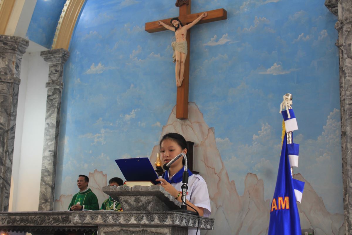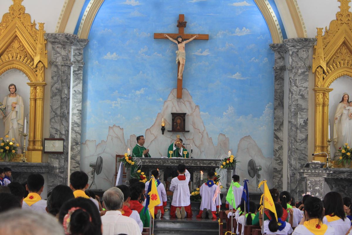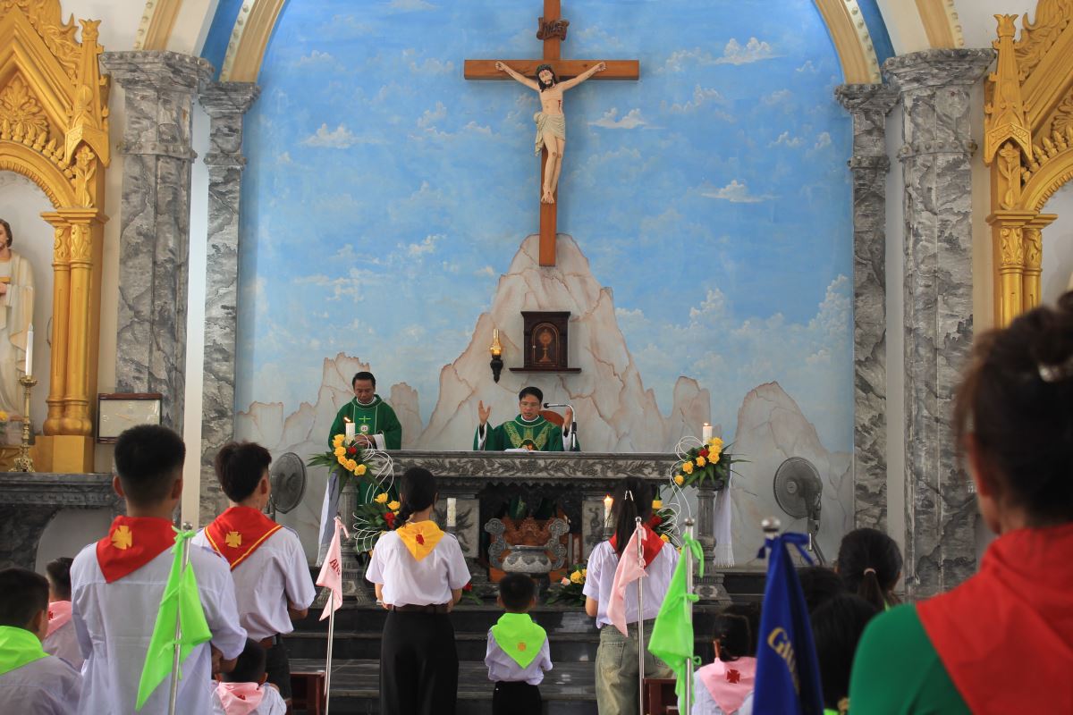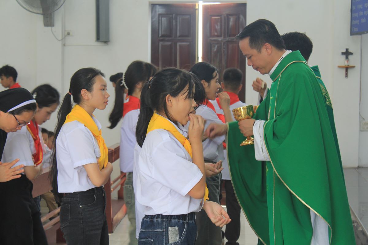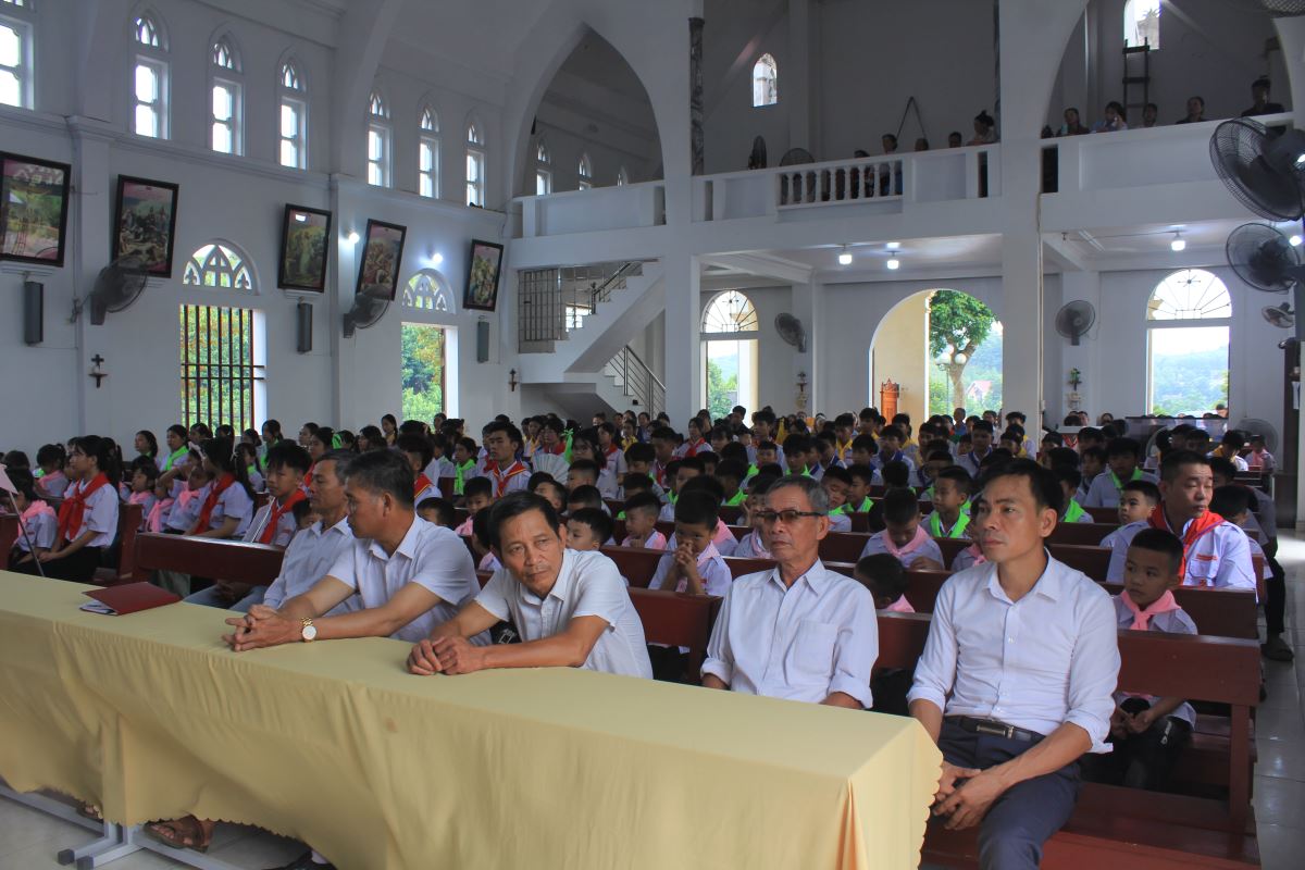 Cao điểm của ngày khai giảng là Thánh lễ tạ ơn do cha Giuse Bùi Ngọc Bảo chủ tế và cha phó Laurenxo Vũ Đức Điệu đồng tế. Trong bầu khí sốt sắng, cộng đoàn cùng dâng lời cầu nguyện xin Chúa ban cho năm học mới nhiều ơn lành và kết quả tốt đẹp.