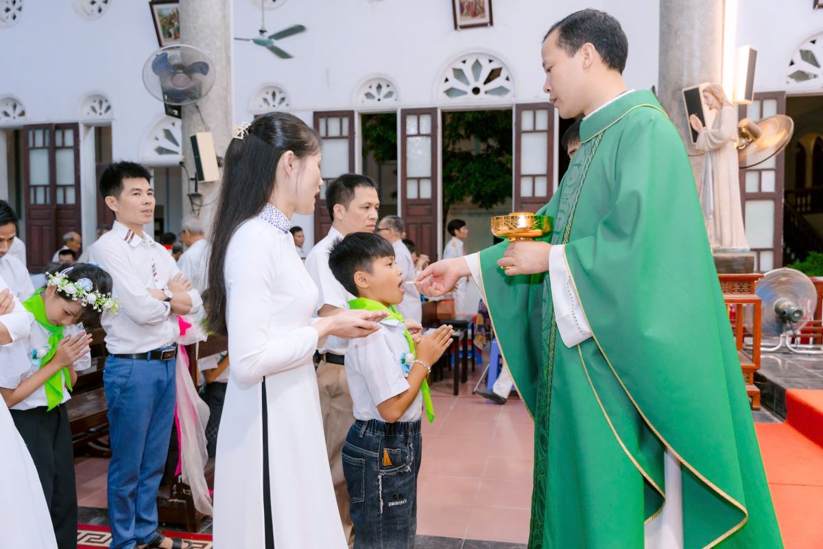 Giây phút linh thiêng khi các em tiến lên bàn thánh rước Mình Thánh Chúa lần đầu