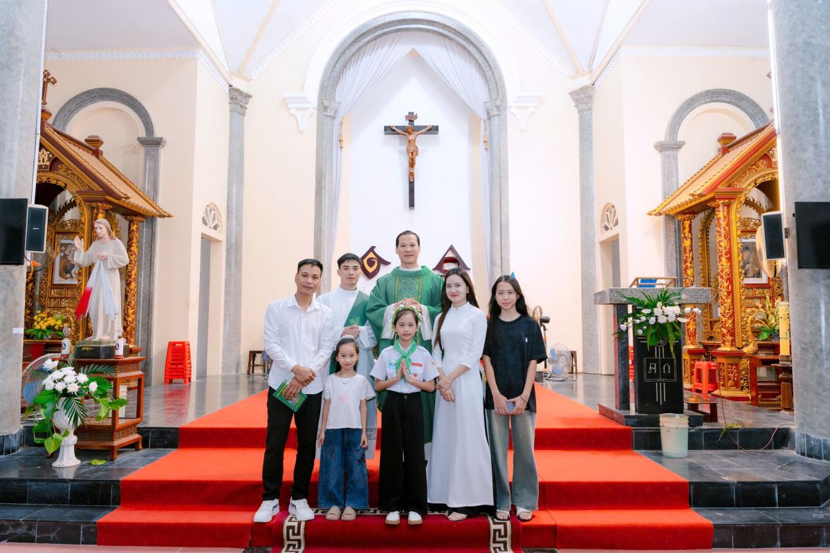 Bức hình lưu niệm cùng cha xứ để ghi dấu ngày trọng đại trong đời sống đức tin
