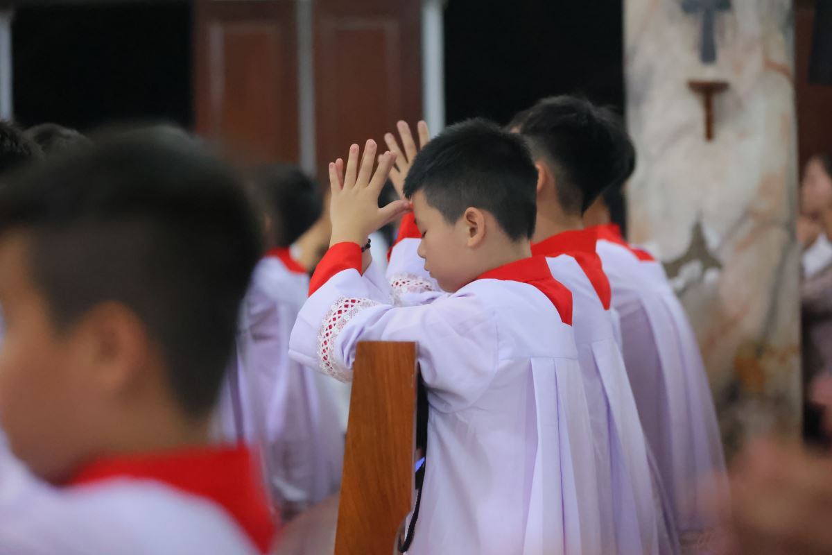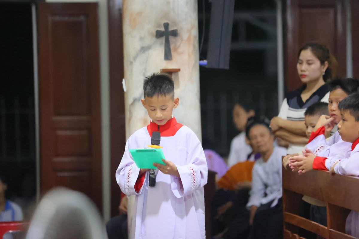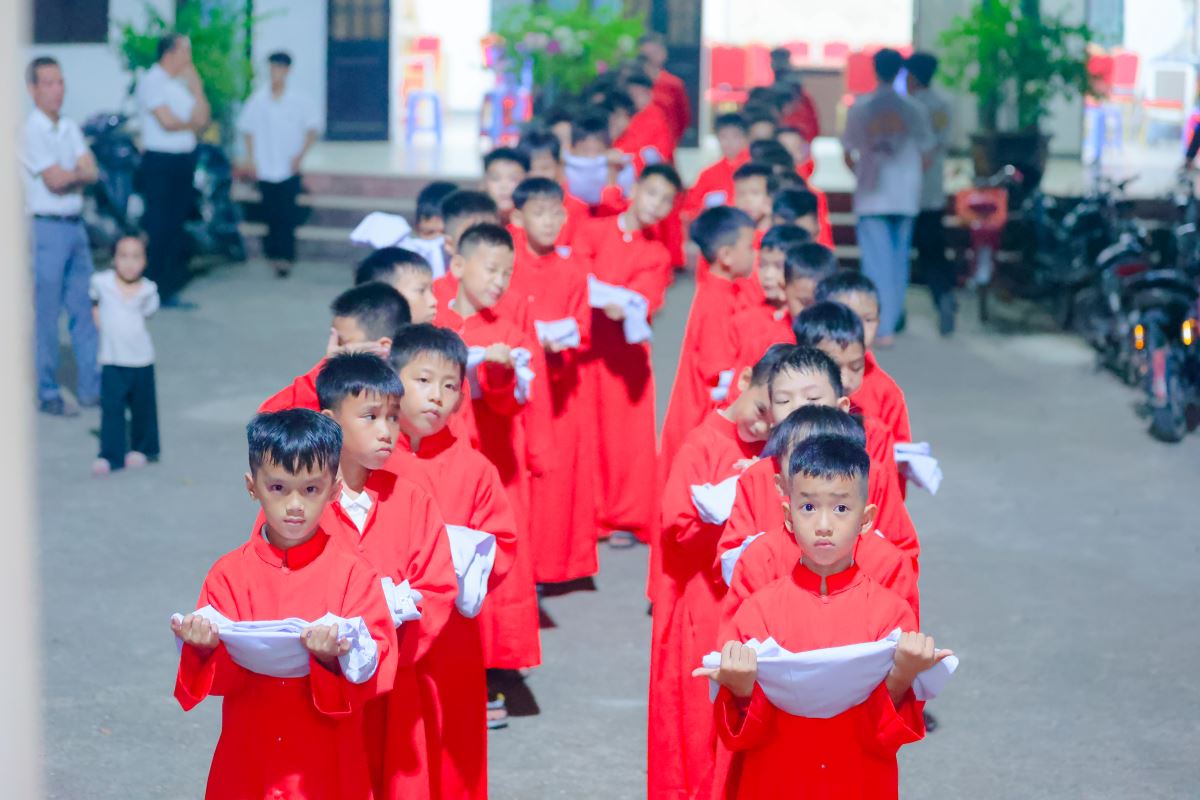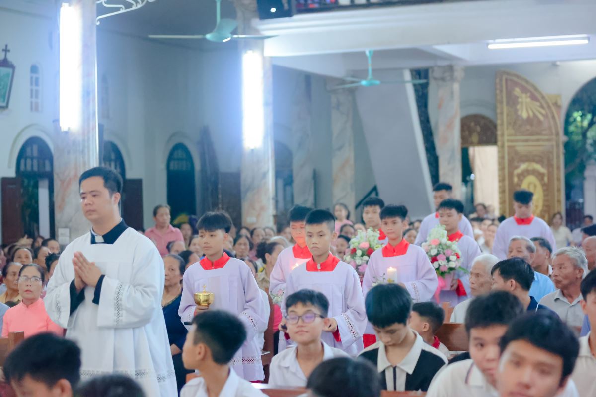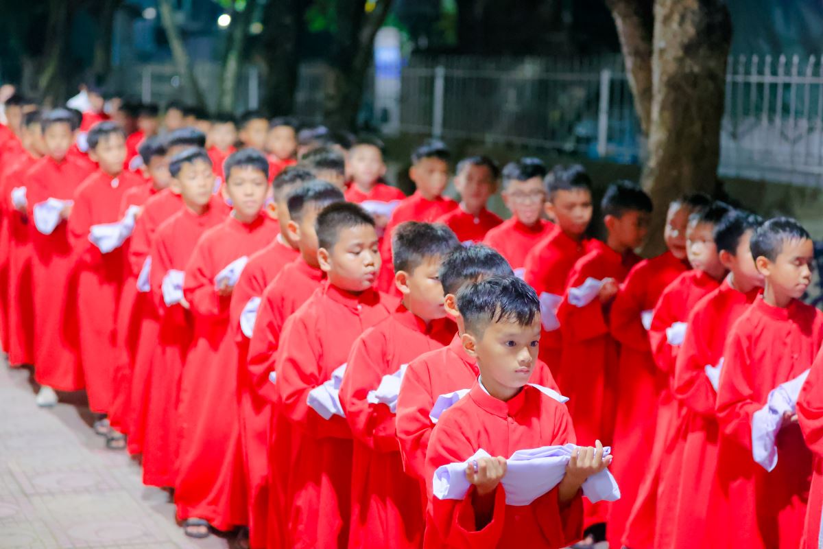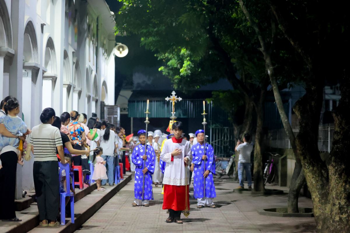 Đúng 20g00 ngày 14 tháng 8, trong lễ vọng Đức Mẹ Hồn Xác Lên Trời, đoàn rước nhập lễ gồm Thánh Giá, nến cao, đội kèn và 60 em lễ sinh cùng cha chủ tế tiến lên bàn thờ trong bầu khí thánh thiêng và sốt sáng.