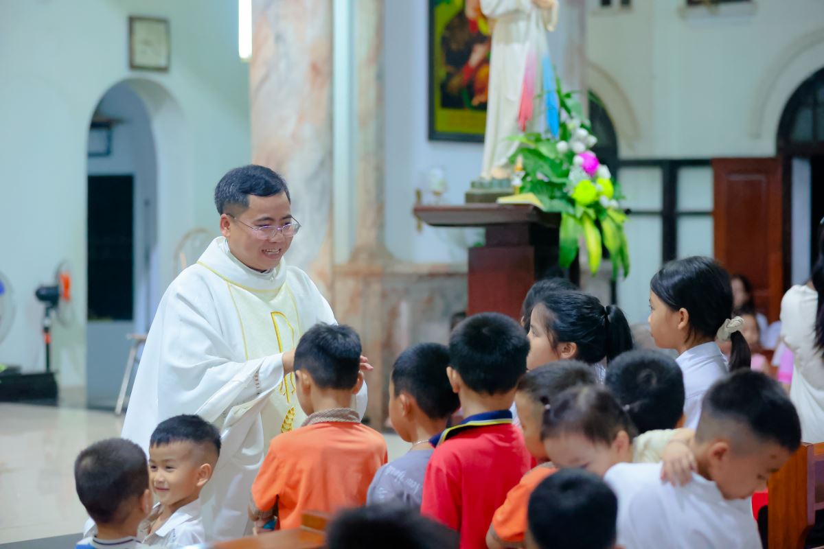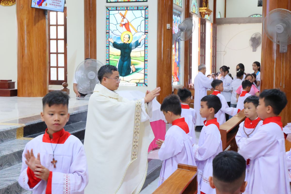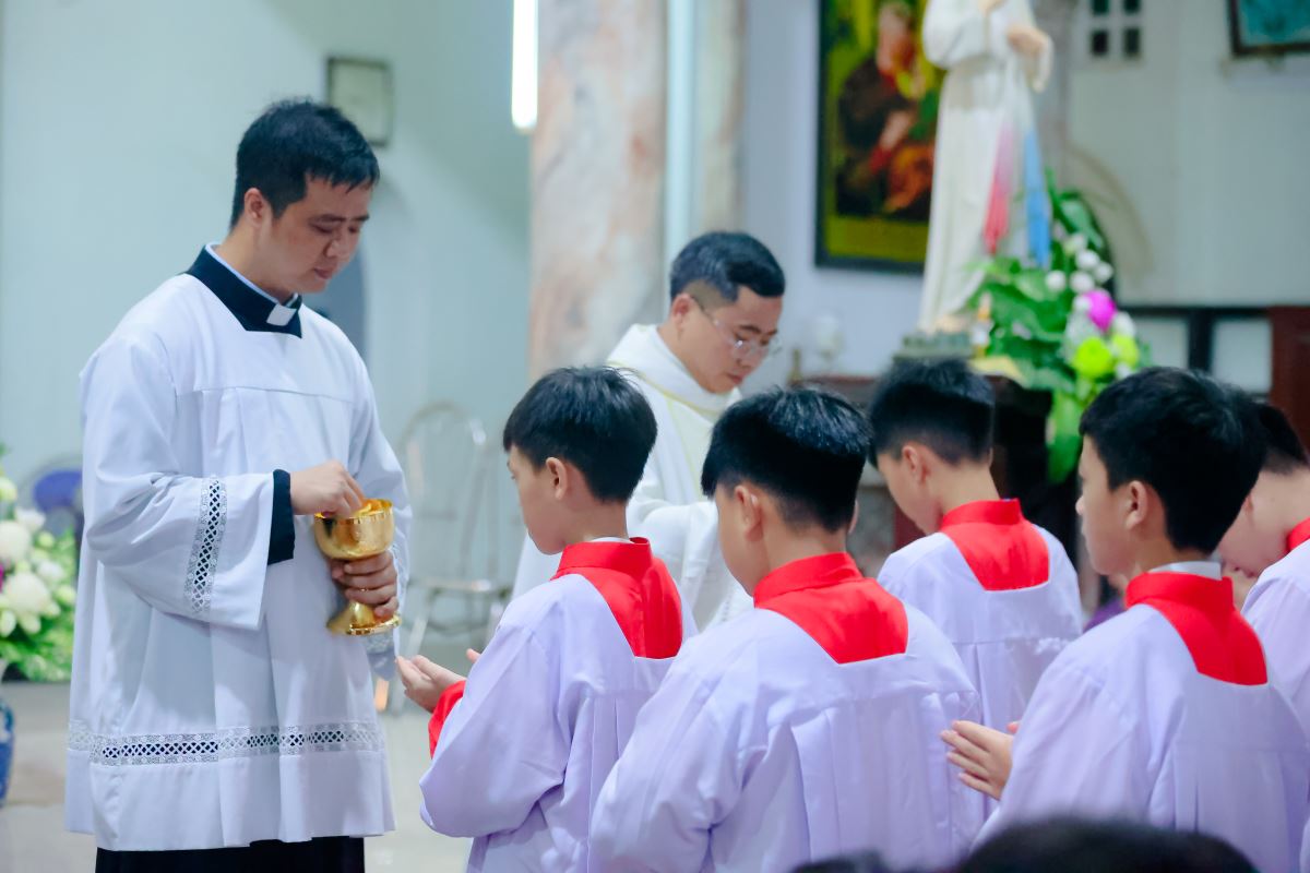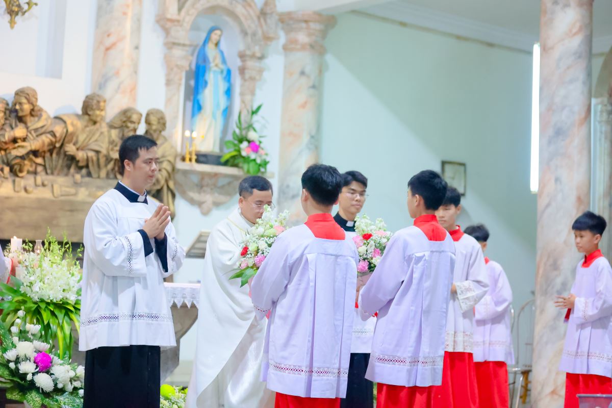 Cha xứ cũng mời gọi các em lễ sinh noi gương Đức Maria trong việc lắng nghe và tuân giữ Lời Chúa, đồng thời học theo Quan thầy Thánh Đaminh Saviô, với lời dạy: “Thà chết chẳng thà phạm tội”. Ngài còn nhắn nhủ: “Hôm nay các con nhận áo lễ sinh, cha mong các con luôn hăng say, nhiệt thành và quyết tâm sống trọn ước muốn của mình. Xin Chúa ban sức mạnh và ơn khôn ngoan để các con yêu mến ơn gọi lễ sinh, làm nền tảng cho những ơn gọi sau này trong ý định của Thiên Chúa.”