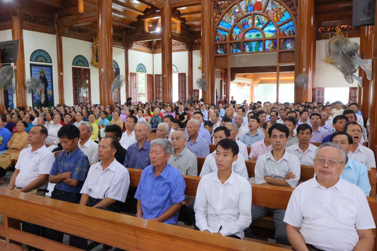 Chia sẻ trong Thánh lễ, cha xứ Giuse nhấn mạnh rằng lễ Đức Mẹ Hồn Xác Lên Trời hôm nay như một cuộc rước Hòm Bia lên đền của Thiên Chúa trong niềm vui khải hoàn. Đức Maria chính là Hòm Bia đích thực, cưu mang Ngôi Lời Thiên Chúa là Đức Giêsu. Mẹ được phúc hơn muôn vàn phụ nữ, bởi vì Mẹ luôn lắng nghe và tuân giữ Lời Chúa.