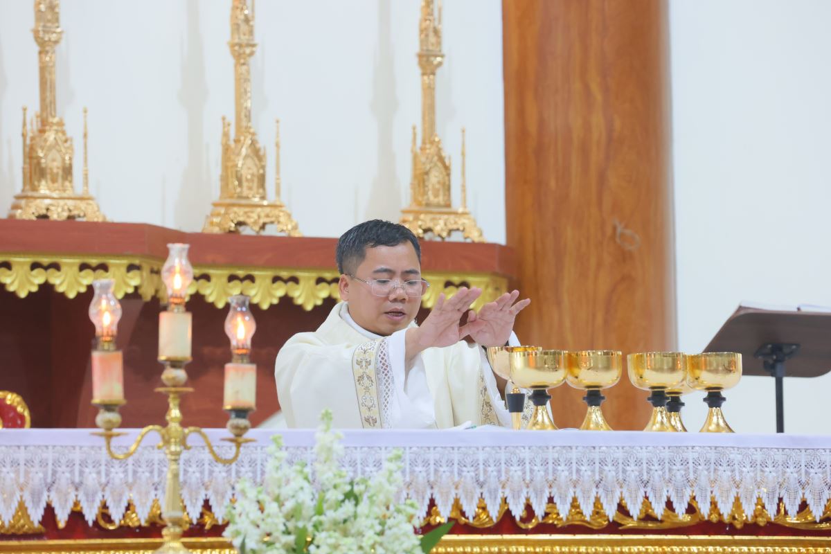 Cha xứ Giuse công bố Tin mừng và giảng lễ |