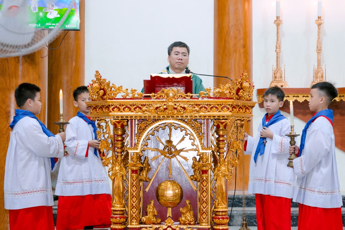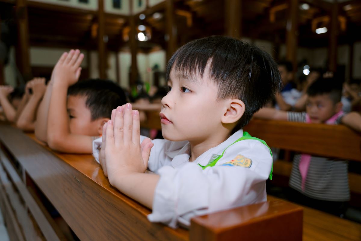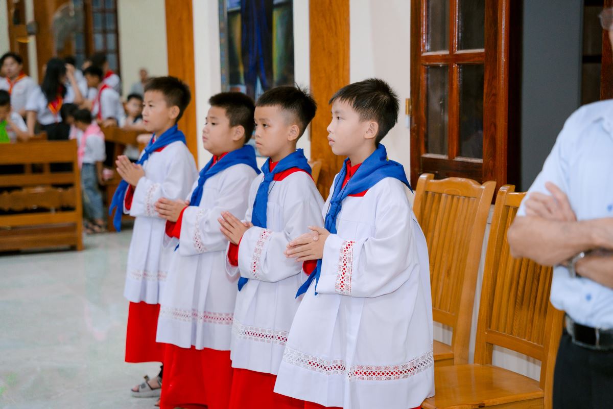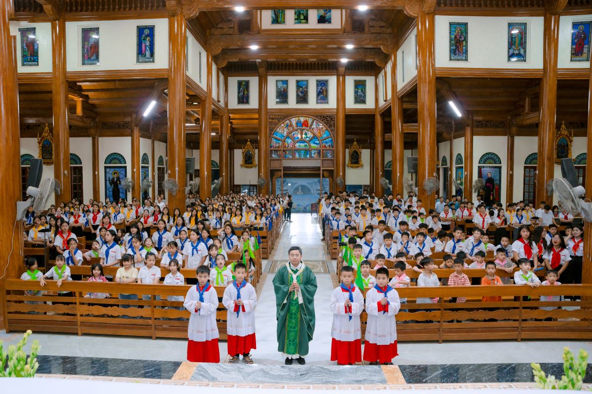 Khép lại một ngày hoạt động sôi nổi là thánh lễ trang nghiêm, sốt sáng vào lúc 19g30, là nơi quy tụ linh thiêng, giúp các em dừng lại, chiêm nghiệm và dâng lên Chúa những thành quả đã đạt được trong suốt hành trình học tập gần 2 tháng qua.