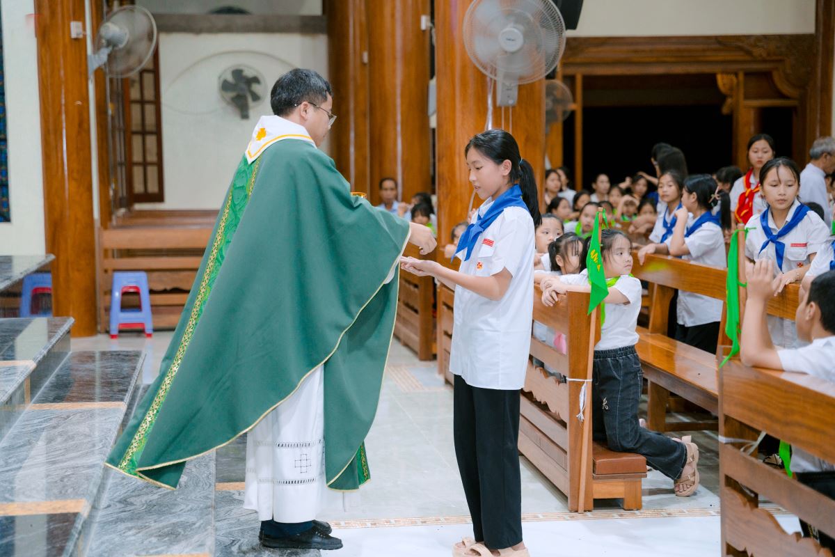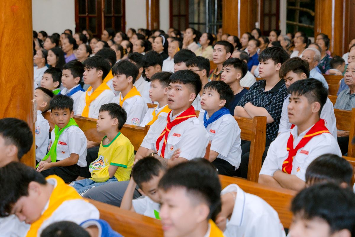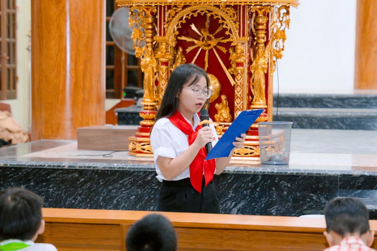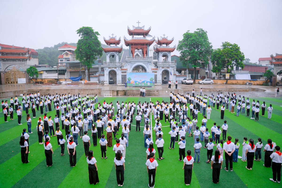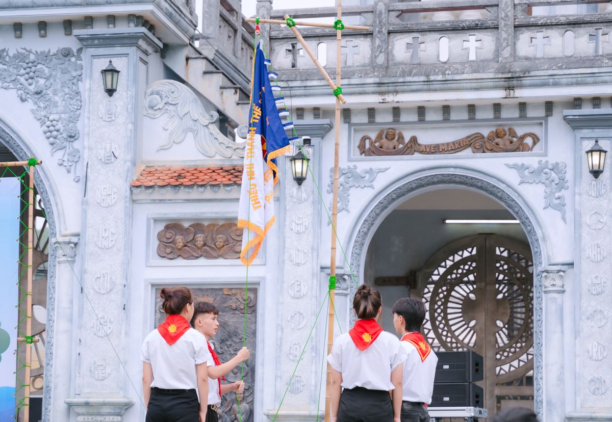 Khởi đầu cho ngày tổng kết hôm nay, lúc 7g00 đông đảo các em thiếu nhi đã có mặt tại khuôn viên nhà thờ Thiên Lộc với tinh thần hào hứng, vui tươi. Chương trình khai mạc đã diễn ra trong bầu khí trang trọng với nghi thức Chào cờ. Lời phát biểu khai mạc của Cha tuyên úy Giuse như tiếp thêm lửa cho hành trình, khích lệ mỗi thiếu nhi tham gia trọn vẹn nhiệt huyết và tinh thần học hỏi.