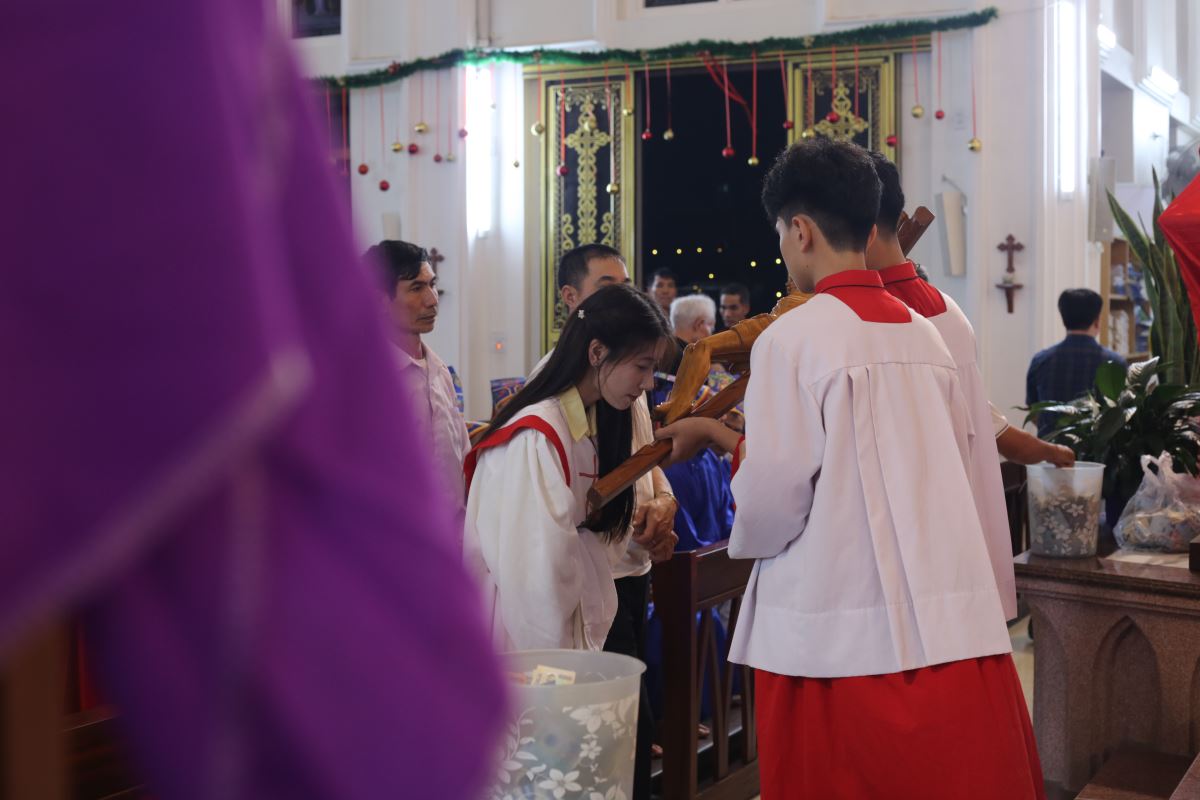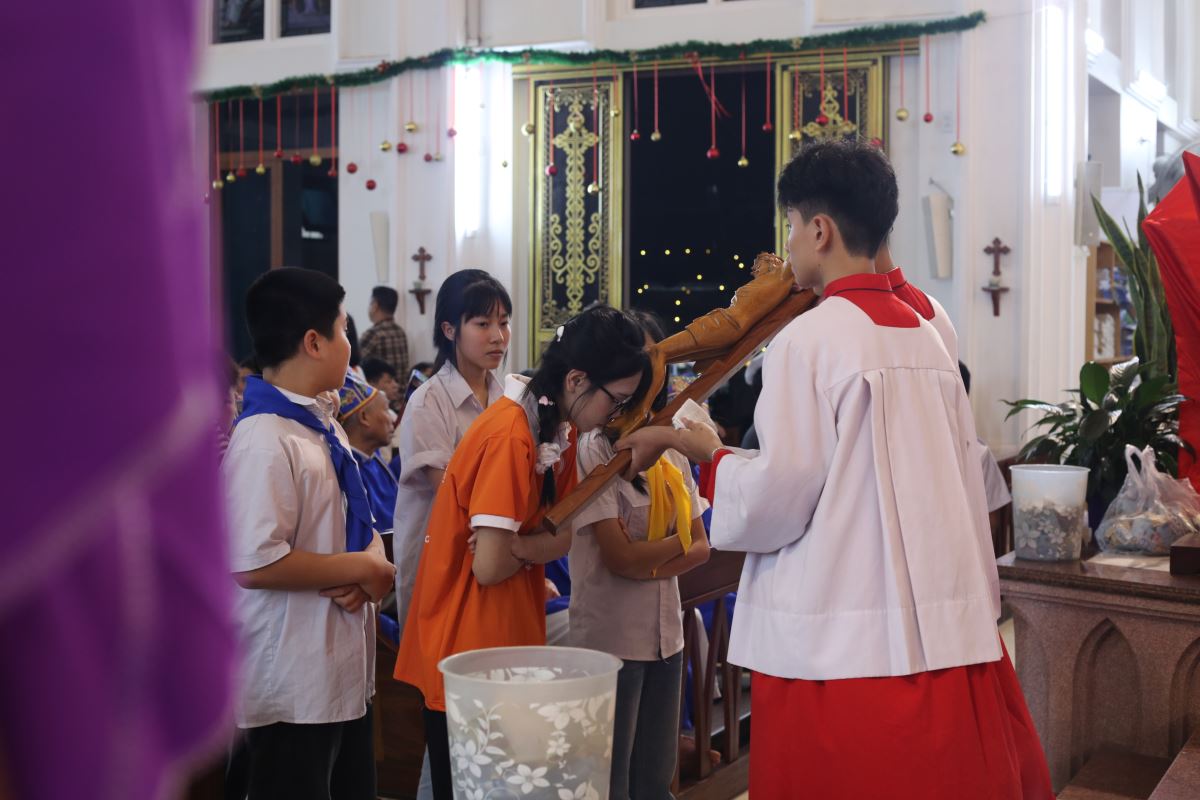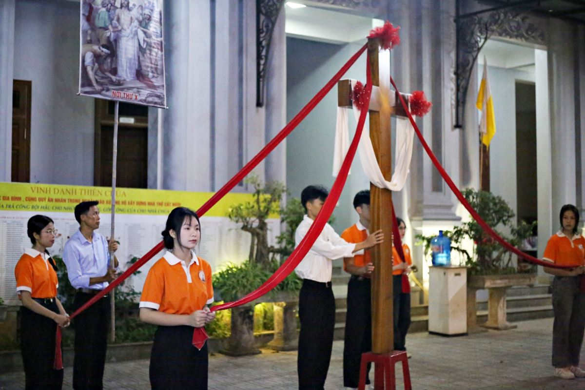 Vào buổi chiều và tối, cộng đoàn cùng nhau tham dự Đàng Thánh Giá, bước theo từng chặng đường khổ nạn của Chúa Giêsu. Những lời suy niệm và bước chân thinh lặng đã giúp mỗi người cảm nhận rõ hơn tình yêu tự hiến của Đấng Cứu Thế, đồng thời mời gọi hoán cải đời sống.
