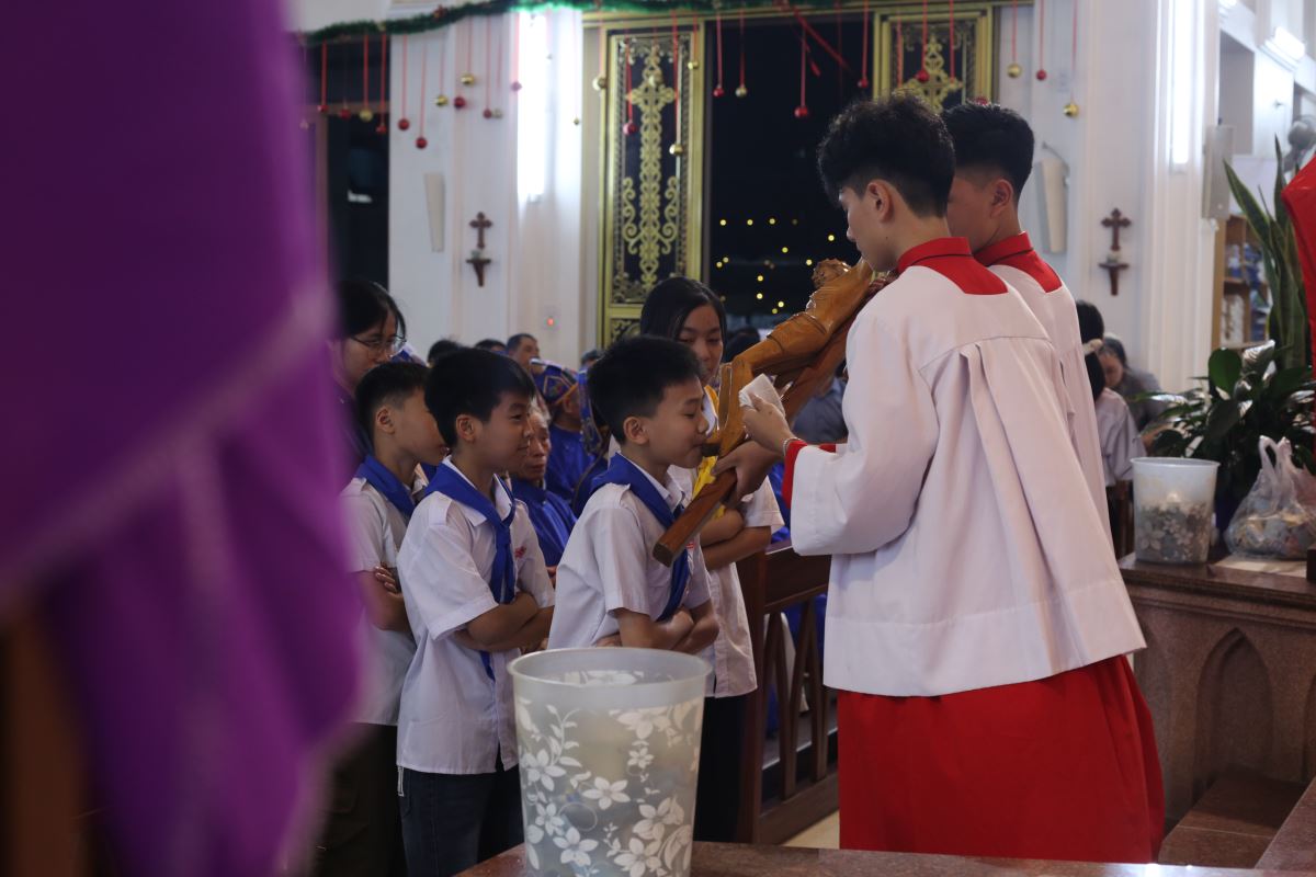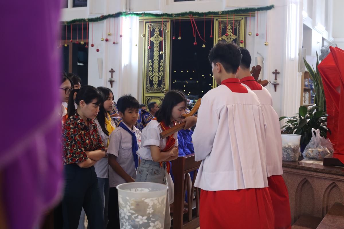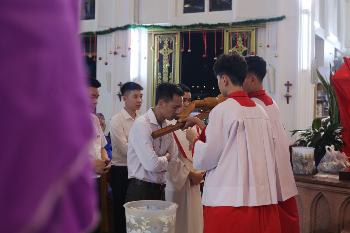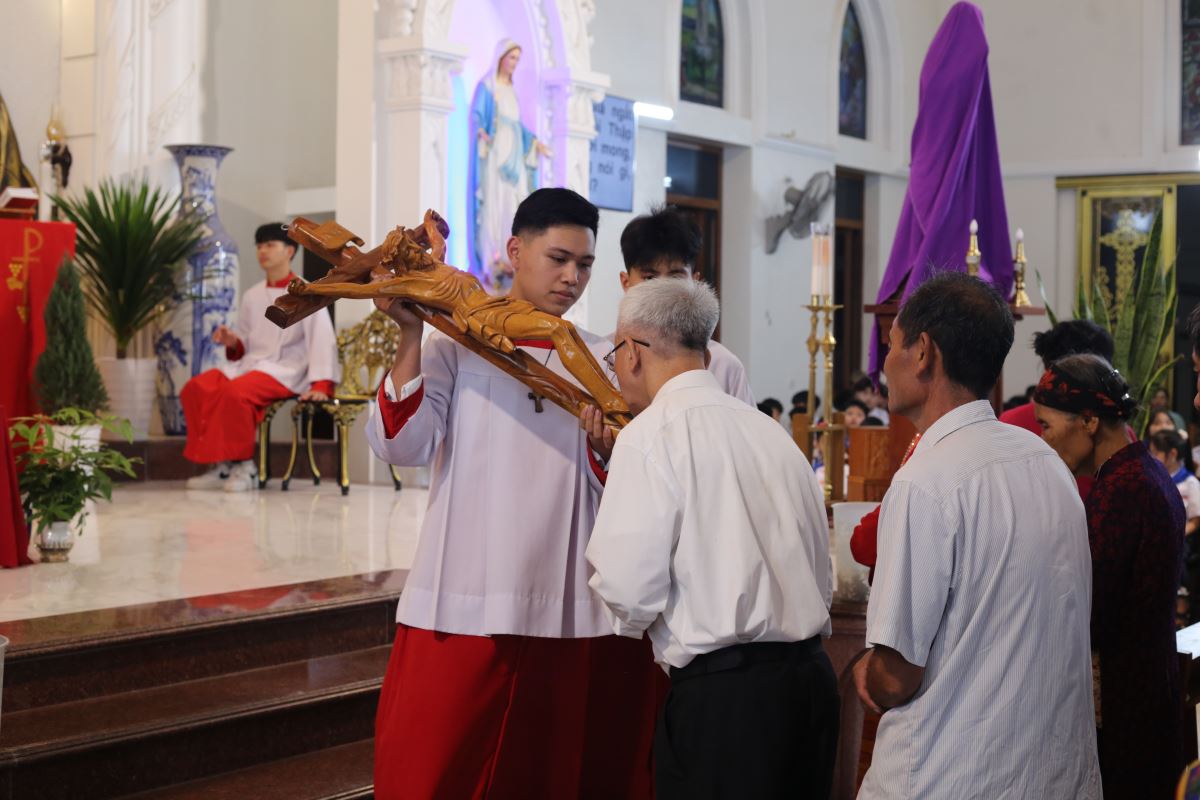 Vào buổi chiều và tối, cộng đoàn cùng nhau tham dự Đàng Thánh Giá, bước theo từng chặng đường khổ nạn của Chúa Giêsu. Những lời suy niệm và bước chân thinh lặng đã giúp mỗi người cảm nhận rõ hơn tình yêu tự hiến của Đấng Cứu Thế, đồng thời mời gọi hoán cải đời sống.