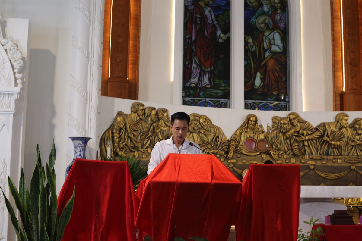 Sau khi nghe trình thuật cuộc Thương Khó của Chúa Giêsu, cha Đaminh Hoàng Thế Bằng đã mời gọi cộng đoàn chiêm ngắm Thập Giá như đỉnh cao của tình yêu Thiên Chúa, nơi Chúa Giêsu đã hiến mình vì nhân loại; từ đó, mỗi người được mời gọi biết đón nhận thập giá đời mình với lòng tin tưởng, sống yêu thương và tha thứ trong đời sống hằng ngày.