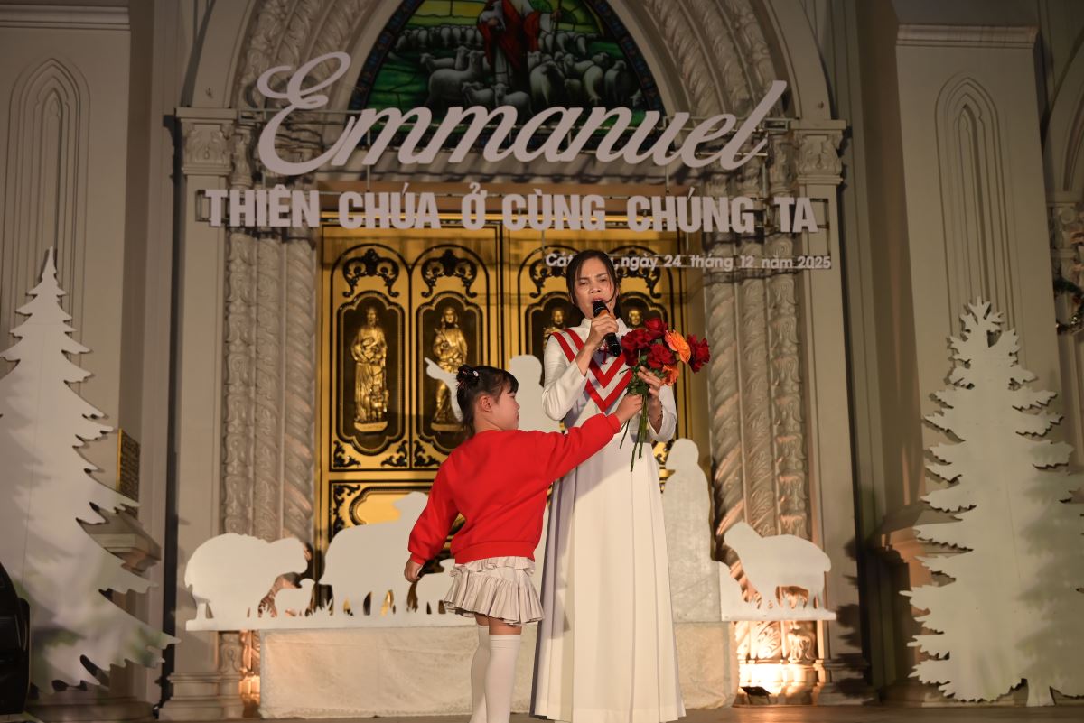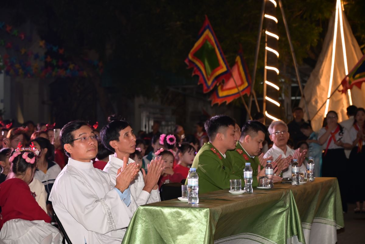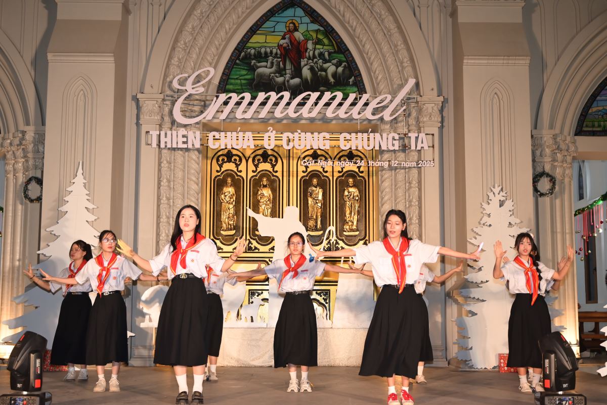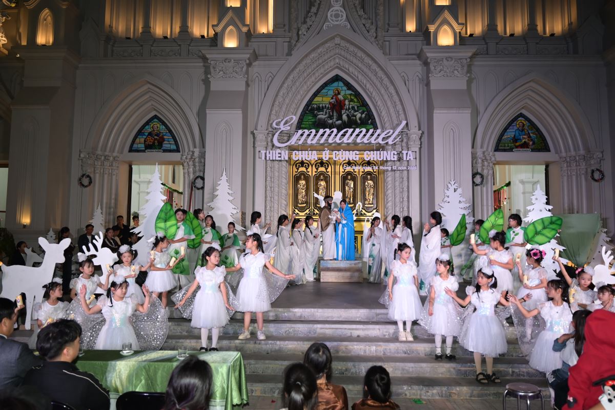 Tiếp nối chương trình là những tiết mục hoan ca chứa đựng những sắc màu yêu thương, bình an của đêm Thánh huyền nhiệm đến từ các em thiếu nhi, các bạn giới trẻ và các hội đoàn trong Giáo xứ. Tất cả như những sợi chỉ dệt nên dải lụa của tâm tình cảm tạ, tri ân dâng lên Hài nhi Giêsu.