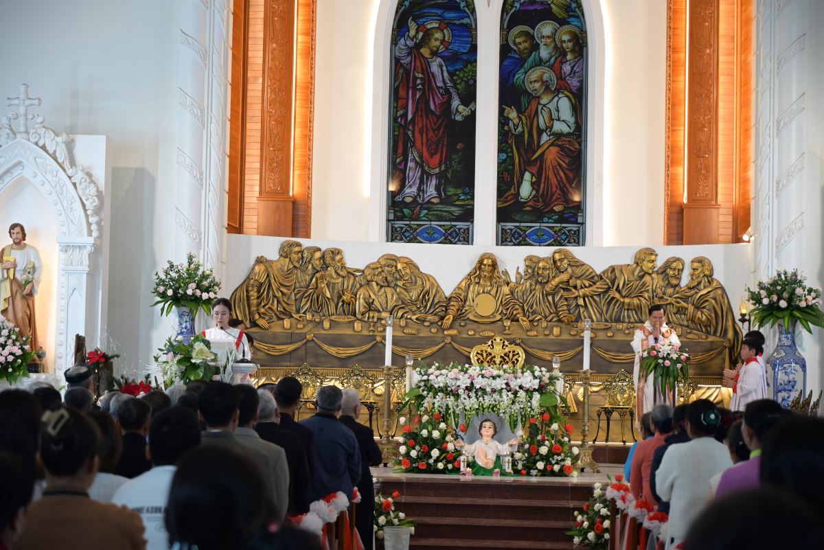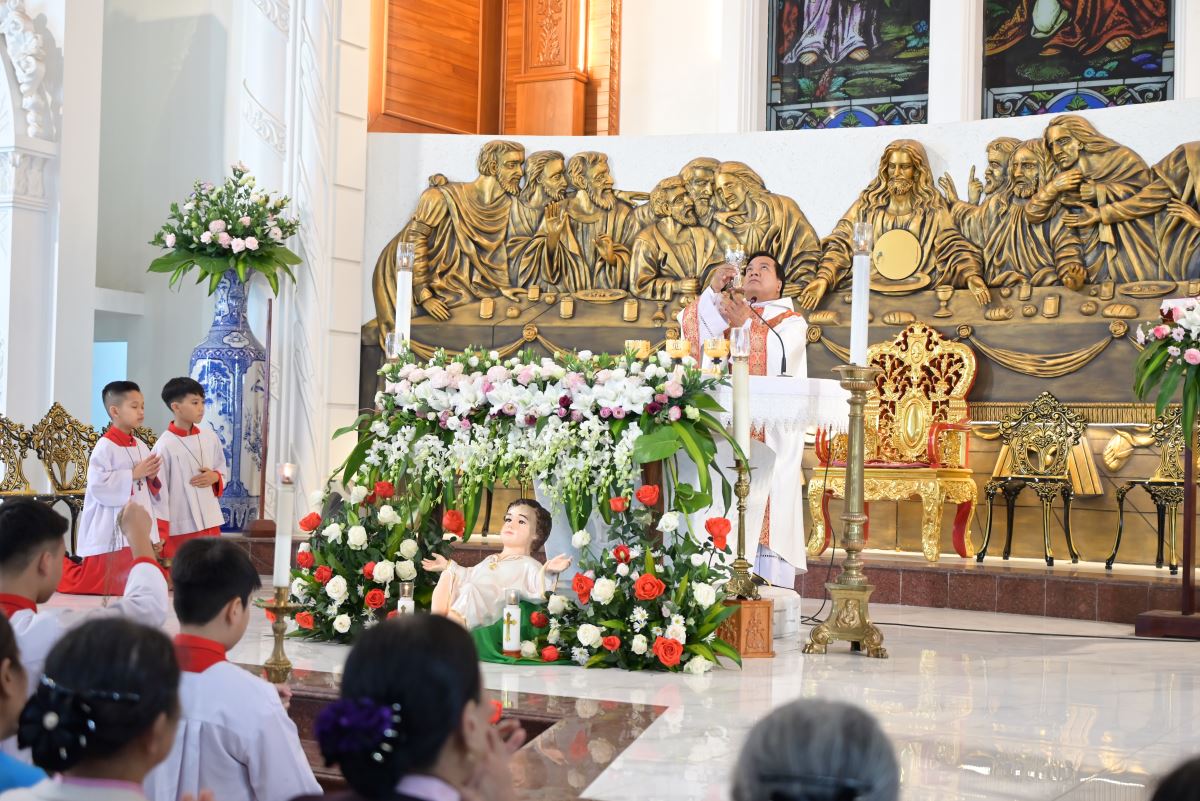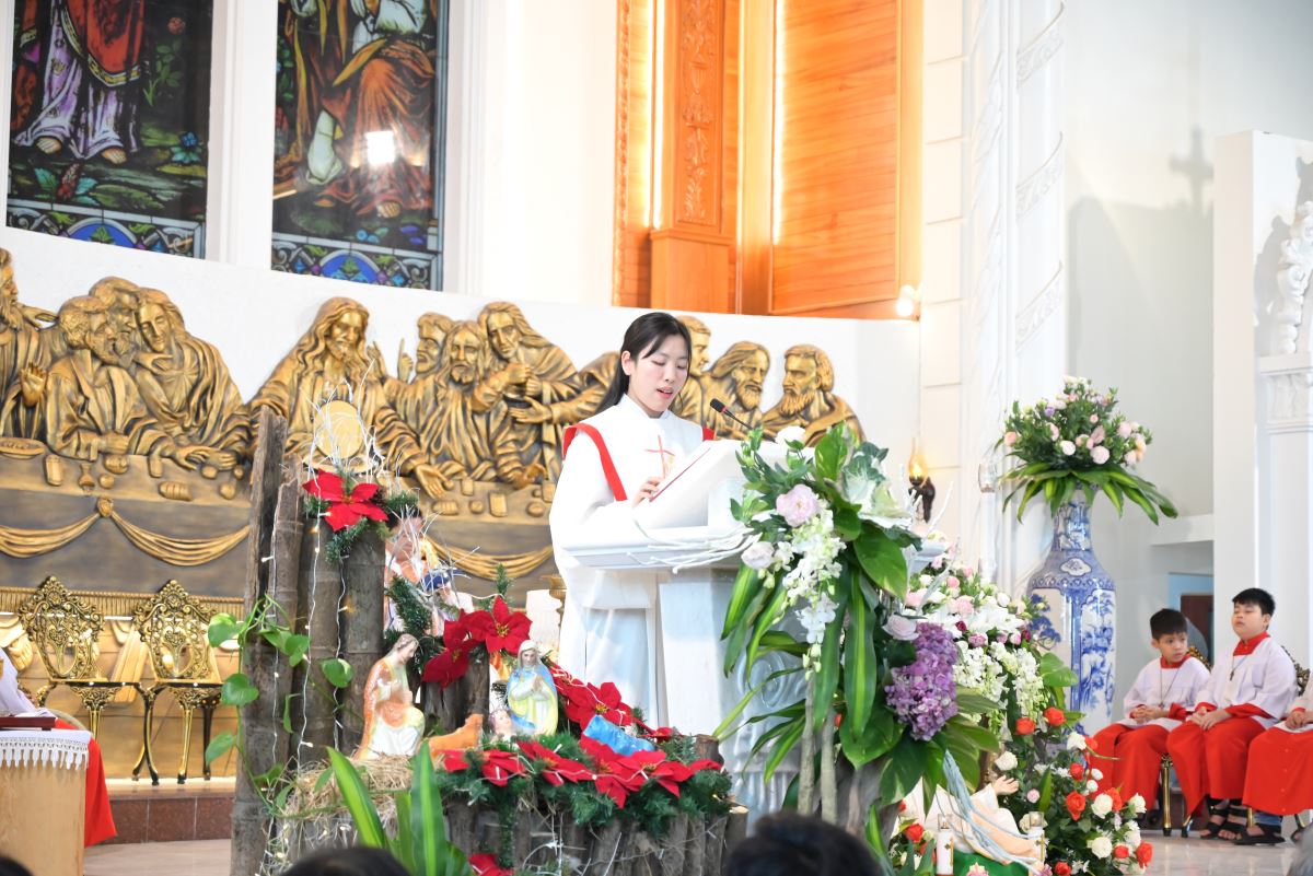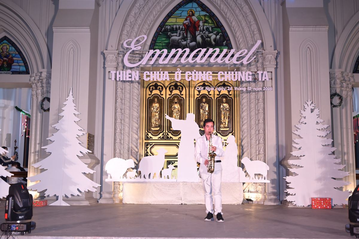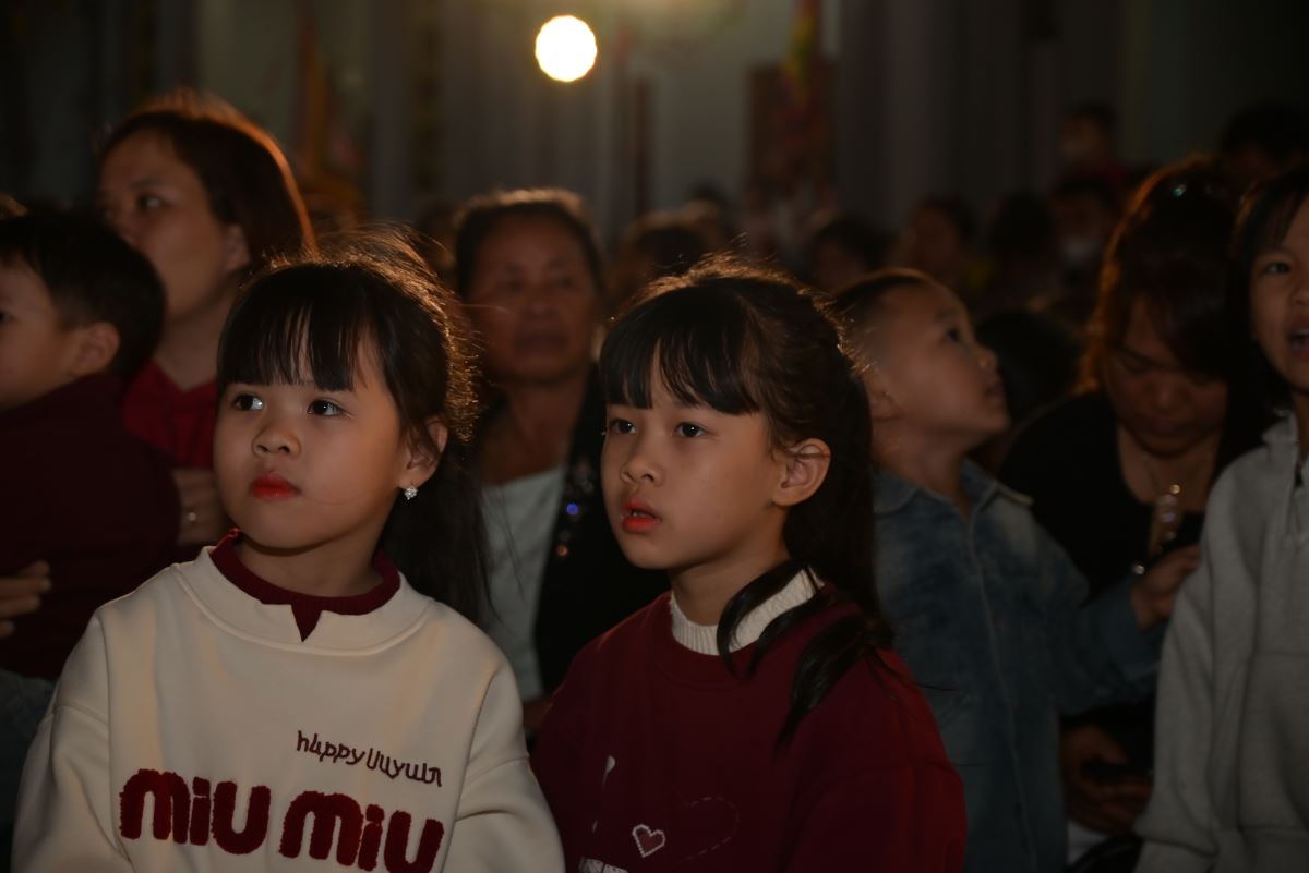 Tiếp nối chương trình là những tiết mục hoan ca chứa đựng những sắc màu yêu thương, bình an của đêm Thánh huyền nhiệm đến từ các em thiếu nhi, các bạn giới trẻ và các hội đoàn trong Giáo xứ. Tất cả như những sợi chỉ dệt nên dải lụa của tâm tình cảm tạ, tri ân dâng lên Hài nhi Giêsu.