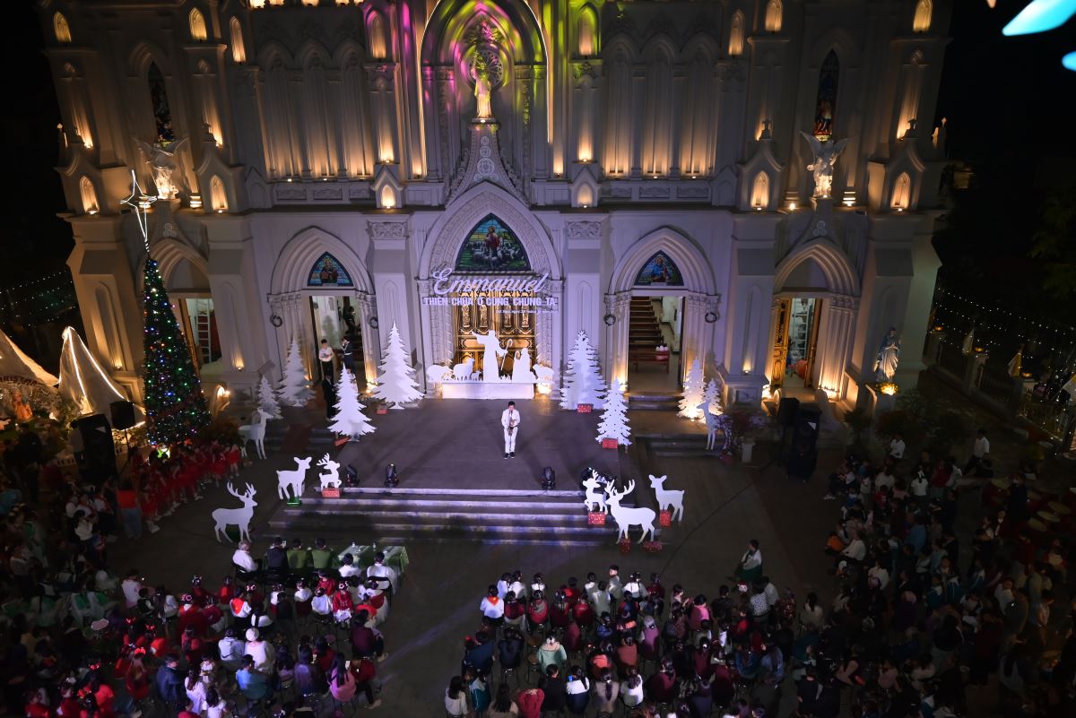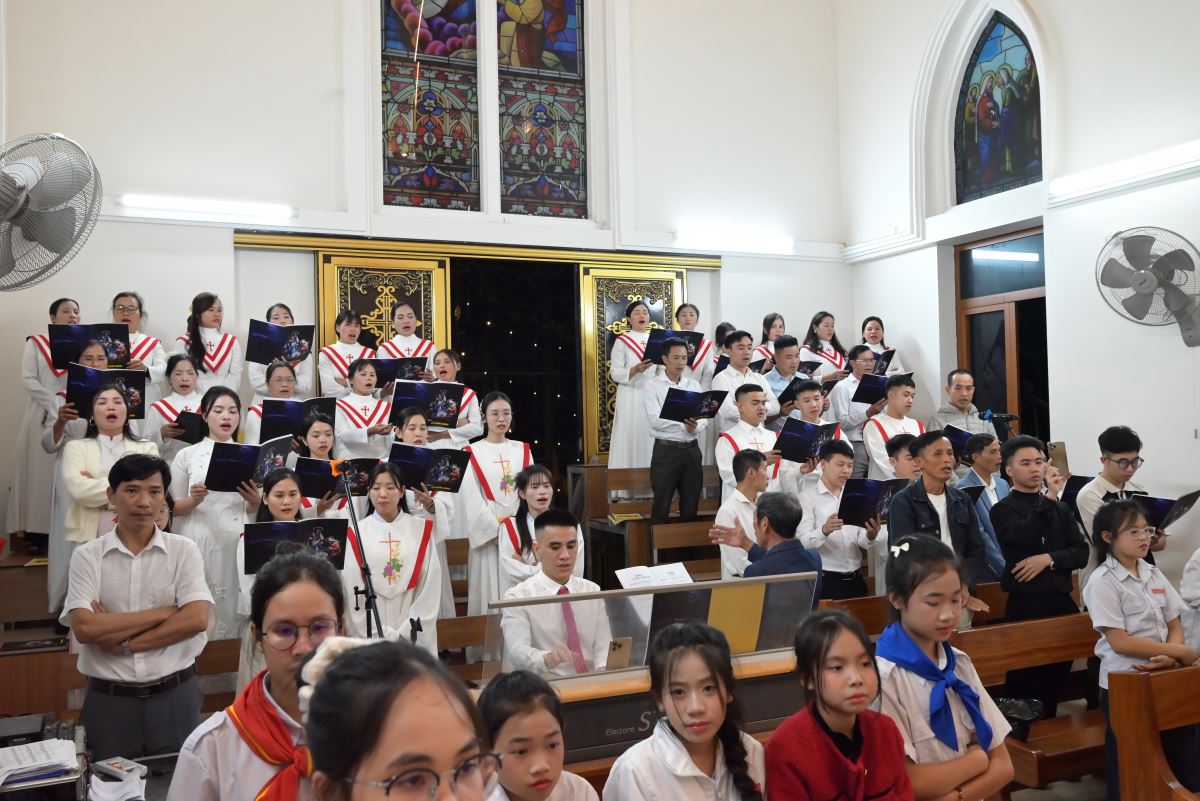Chương trình hoan ca mừng Chúa Giáng Sinh 2025 tại giáo xứ Cát Ngòi bắt đầu lúc 19h30, hiện diện trong đêm hoan ca có quý cha khách, quý thầy, quý dì, quý khách đại diện chính quyền xã Dương Hòa (TP. Hà Nội), các thành viên Hội đồng Mục vụ giáo xứ, các hội đoàn, ca đoàn và đông đảo cộng đoàn dân Chúa trong và ngoài giáo xứ Cát Ngòi.