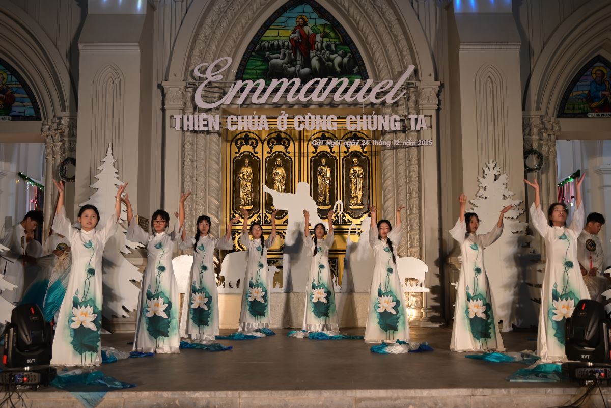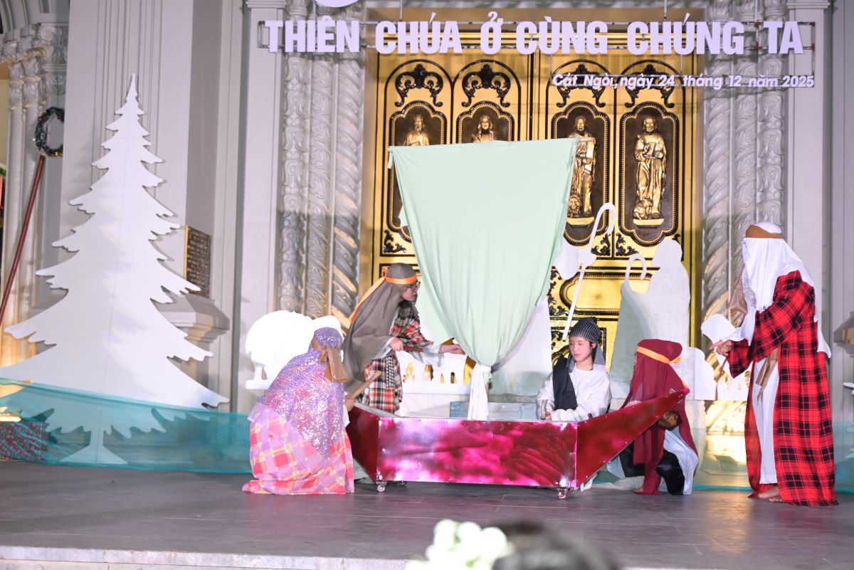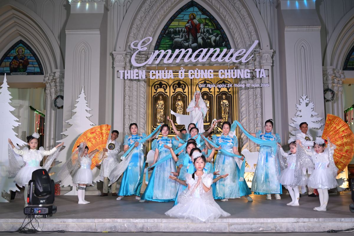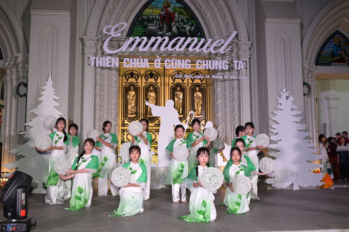 Điểm nhấn của đêm hoan ca mừng Chúa Giáng Sinh 2025 tại giáo xứ Cát Ngòi là phần diễn nguyện với sự chuẩn bị kỹ lưỡng của ca đoàn, giới trẻ và các em thiếu nhi họ nhà xứ Cát Ngòi. Hoạt cảnh diễn nguyện đã giúp cộng đoàn lắng đọng tâm hồn như đang được sống lại thời điểm cách đây hơn hai nghìn không trăm hai mươi hai năm trong dòng lịch sử dân Thánh và cảm nếm hành trình ban ơn Cứu độ của Thiên Chúa cho con người mà đỉnh cao là biến cố Ngôi Hai hạ sinh trong xác phàm.