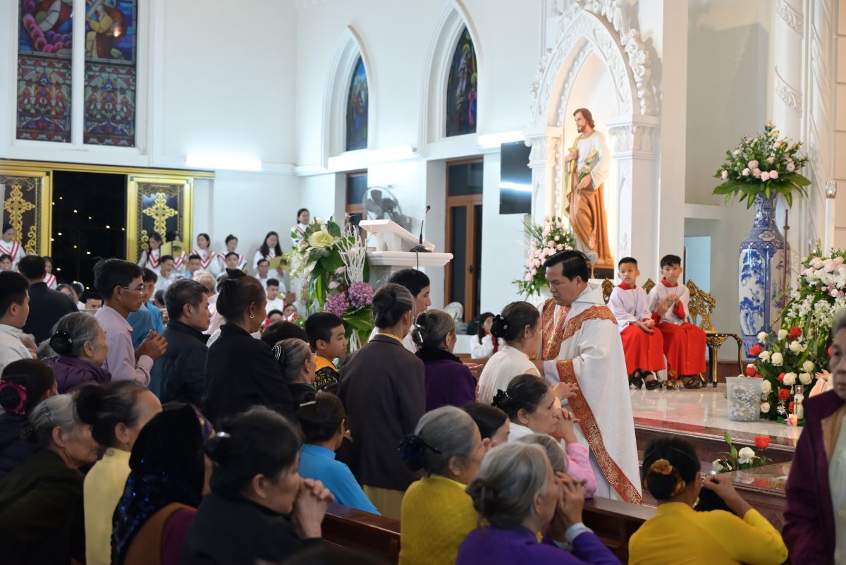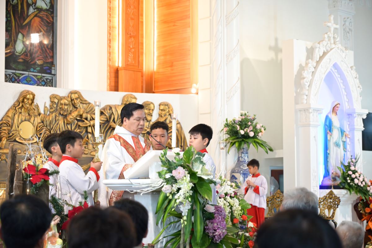 Đúng 22g00, Thánh lễ đêm mừng Chúa Giáng sinh được Cha xứ Đaminh Hoàng Thế Bằng long trọng cử hành với sự hiệp thông của đông đảo cộng đoàn dân Chúa.