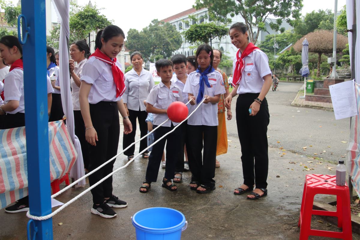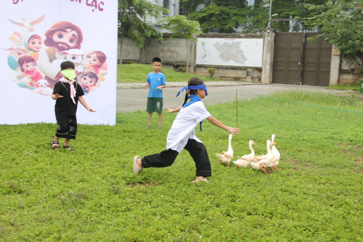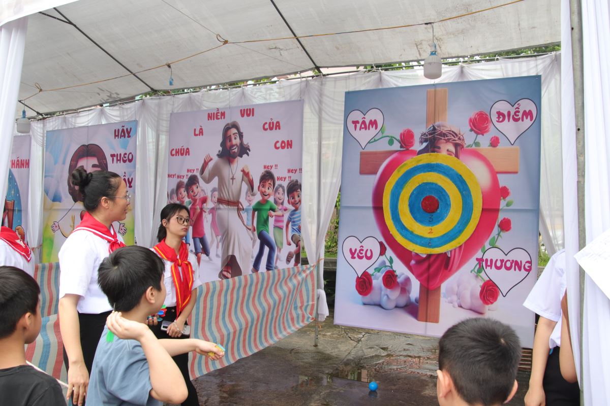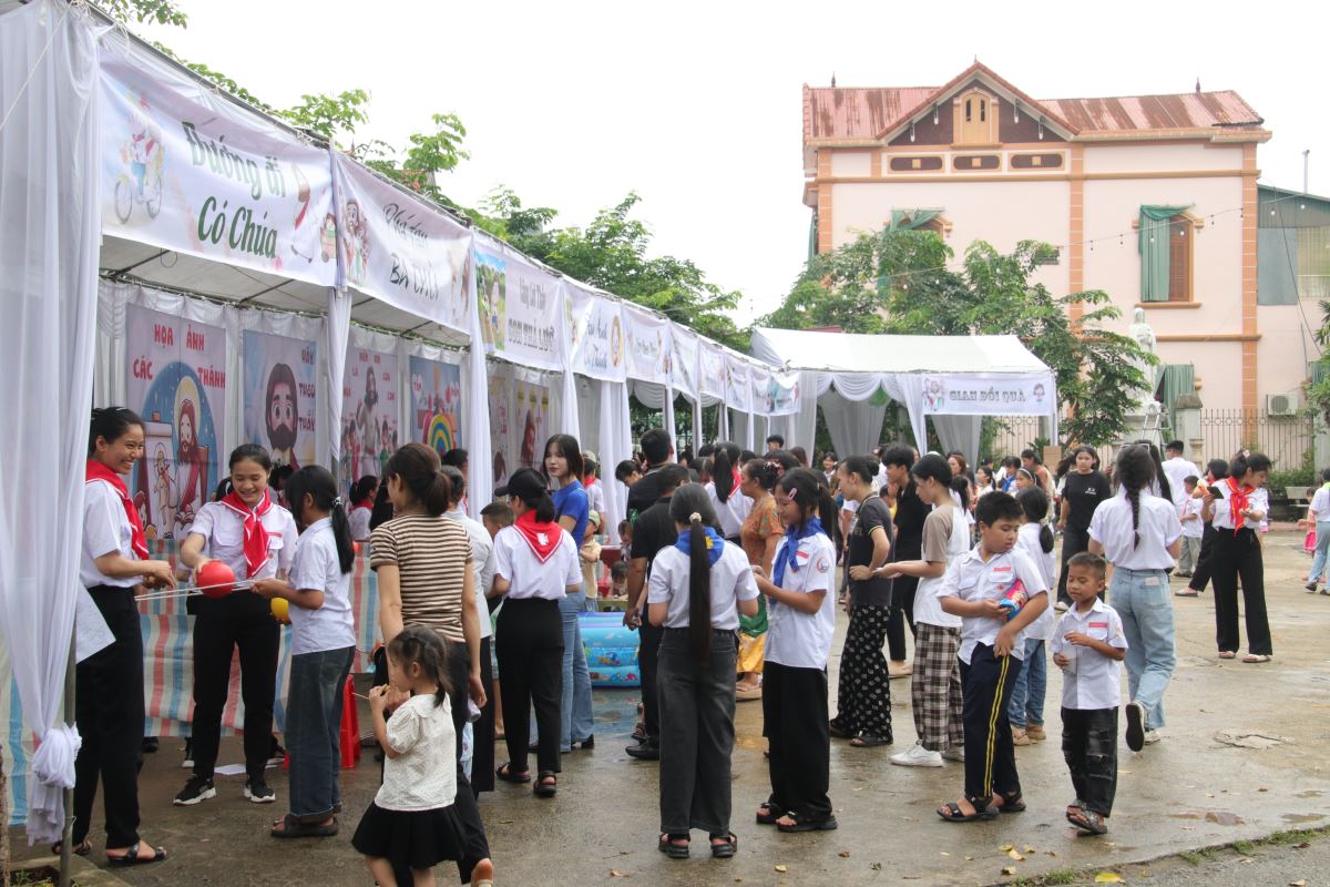 Sau giờ thi, toàn thể thiếu nhi bước vào khuôn viên hội chợ với các gian hàng trò chơi phong phú và hấp dẫn. Đặc biệt, hội chợ không chỉ có sự tham gia của các em Thiếu nhi Thánh Thể mà còn có sự góp mặt của nhiều bạn thiếu nhi tôn giáo bạn đến giao lưu, cùng nhau vui chơi trong tình thân ái và cởi mở. Các em đổi phiếu lễ hằng tuần hoặc trả lời câu hỏi giáo lý để nhận phiếu chơi, tích lũy phiếu thưởng và dùng chúng để đổi quà – gồm đồ ăn, dụng cụ học tập và quà lưu niệm tại gian hàng đổi quà. Không khí vui nhộn, tiếng cười giòn giã và niềm háo hức hiện rõ trên từng gương mặt non trẻ.