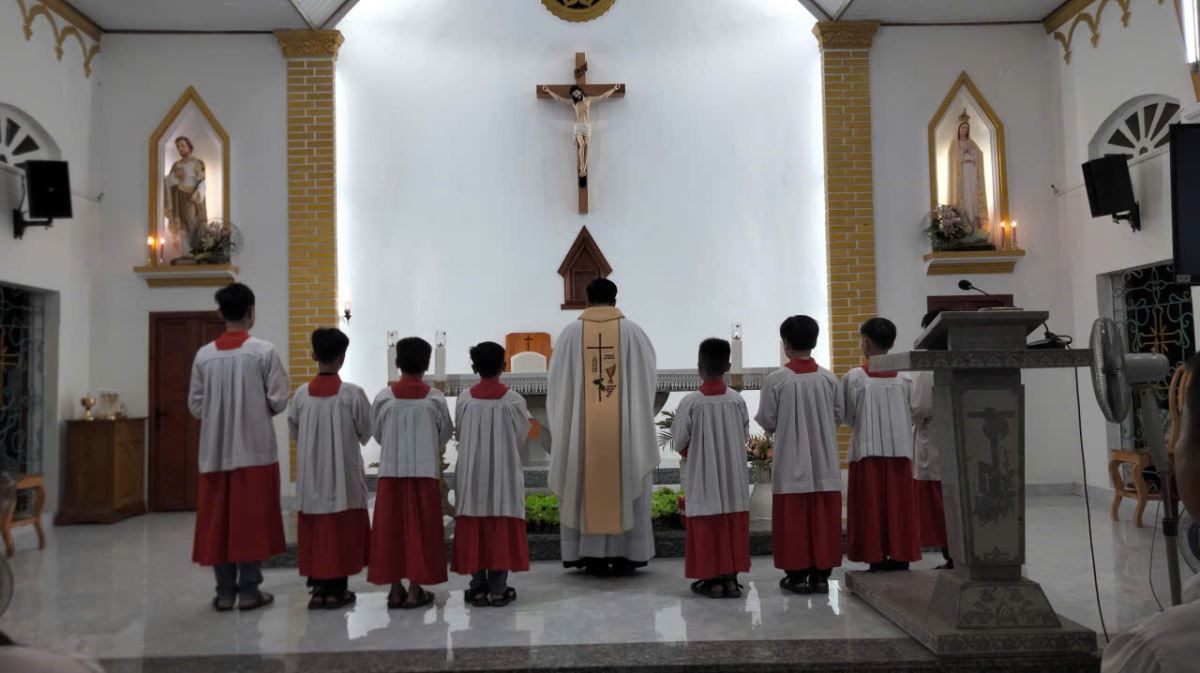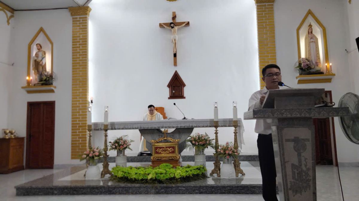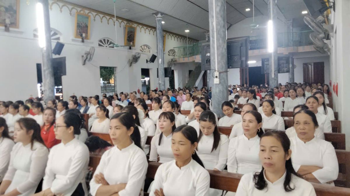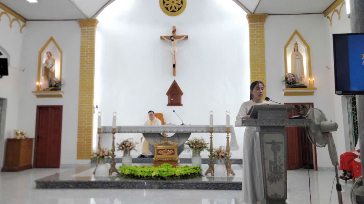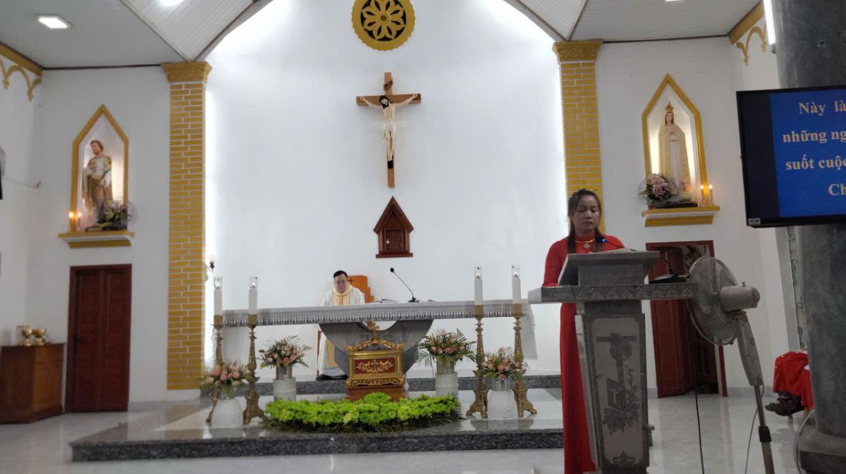 Sau phần dâng hoa, cộng đoàn cùng hiệp dâng Thánh lễ kính các Thánh Nam Nữ và tạ ơn bế mạc Tháng Mân Côi, do cha Giuse Dương Đắc Tiến chủ tế.