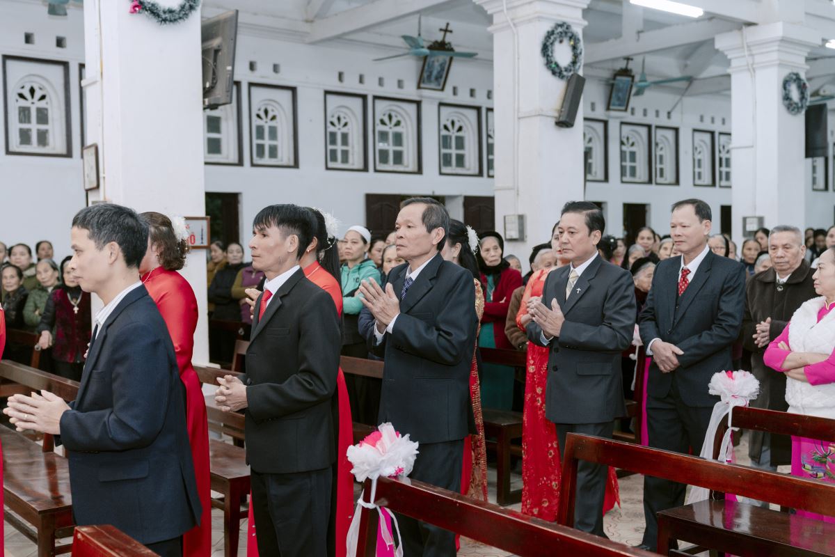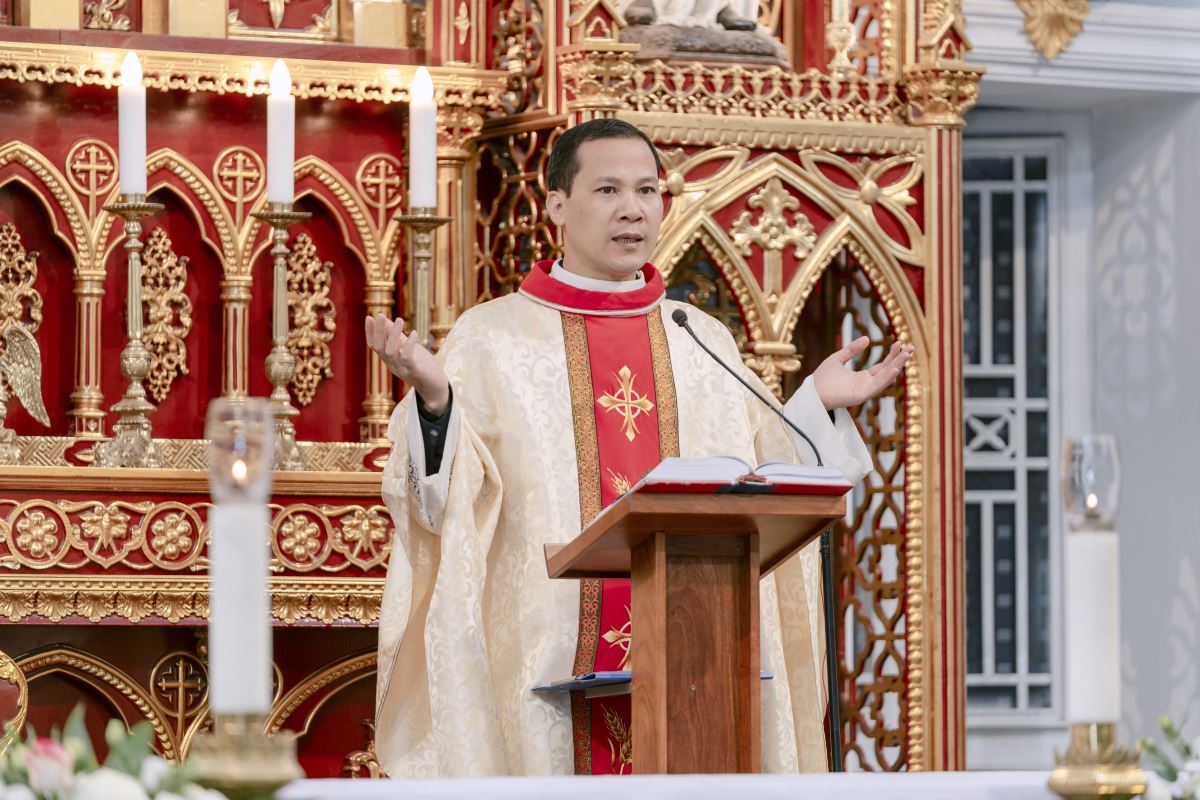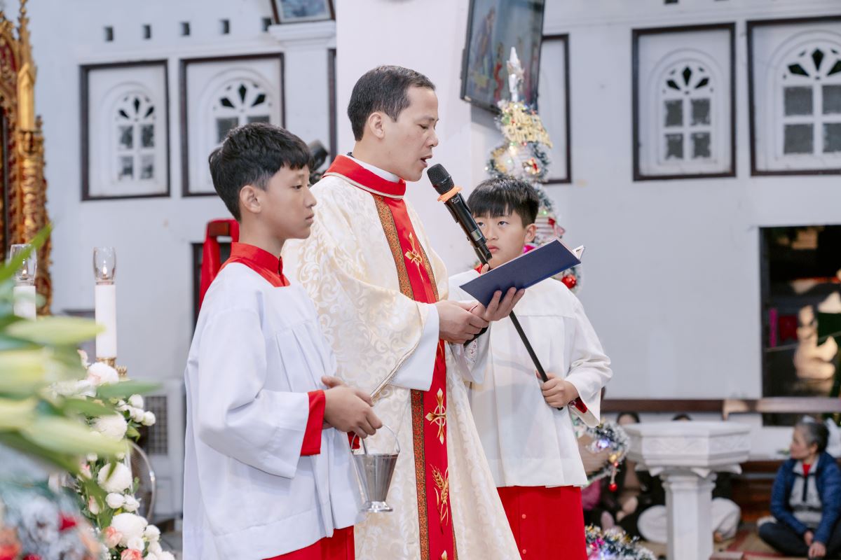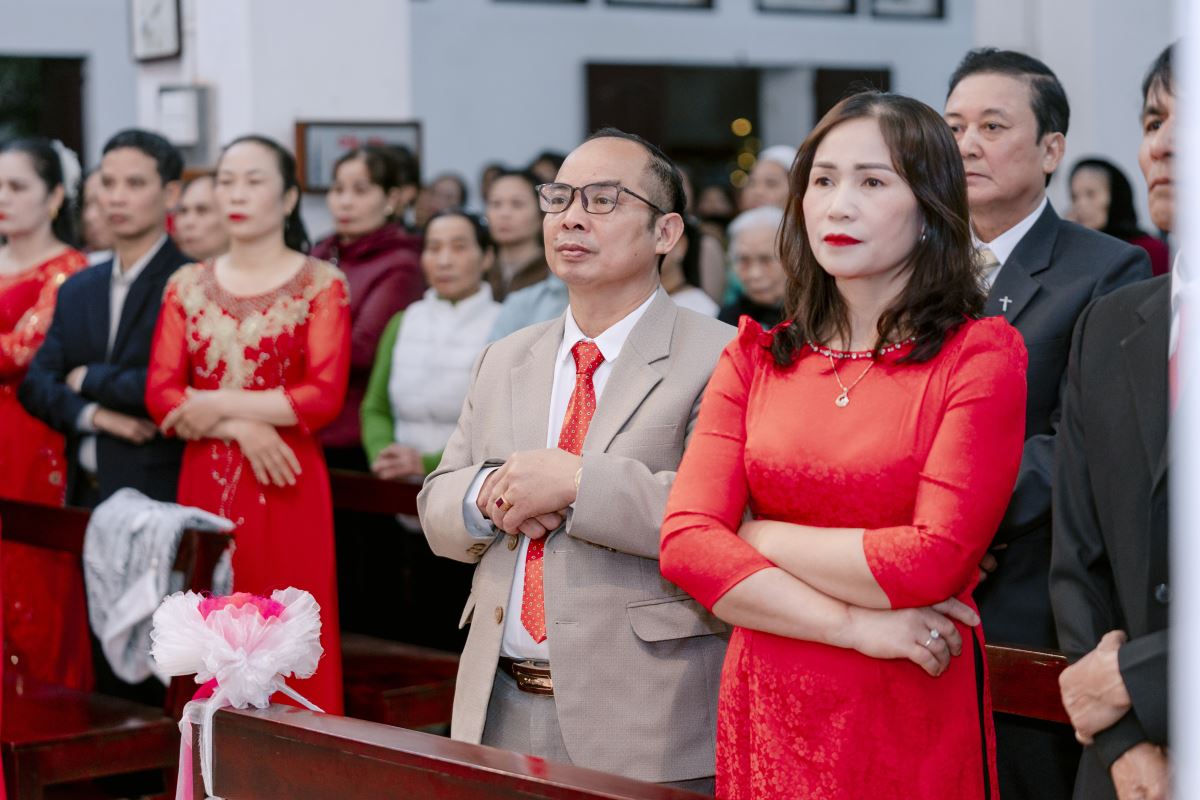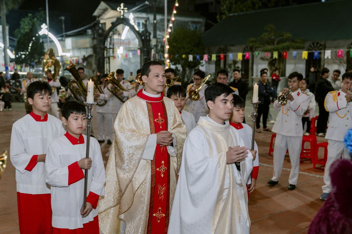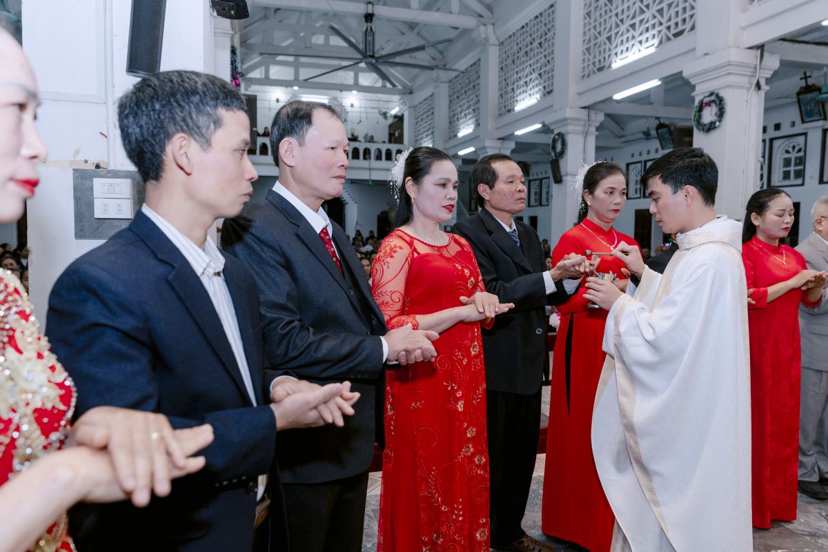 Thánh lễ do cha xứ Giuse Hà Văn Trọng chủ tế, đồng tế có cha phó Giuse Lê Kim Quý. Trong bài chia sẻ Lời Chúa, cha Giuse Lê Kim Quý mời gọi các gia đình noi gương Thánh Gia Nadarét, biết yêu thương, cảm thông và trung tín với ơn gọi hôn nhân giữa những thăng trầm của cuộc sống.