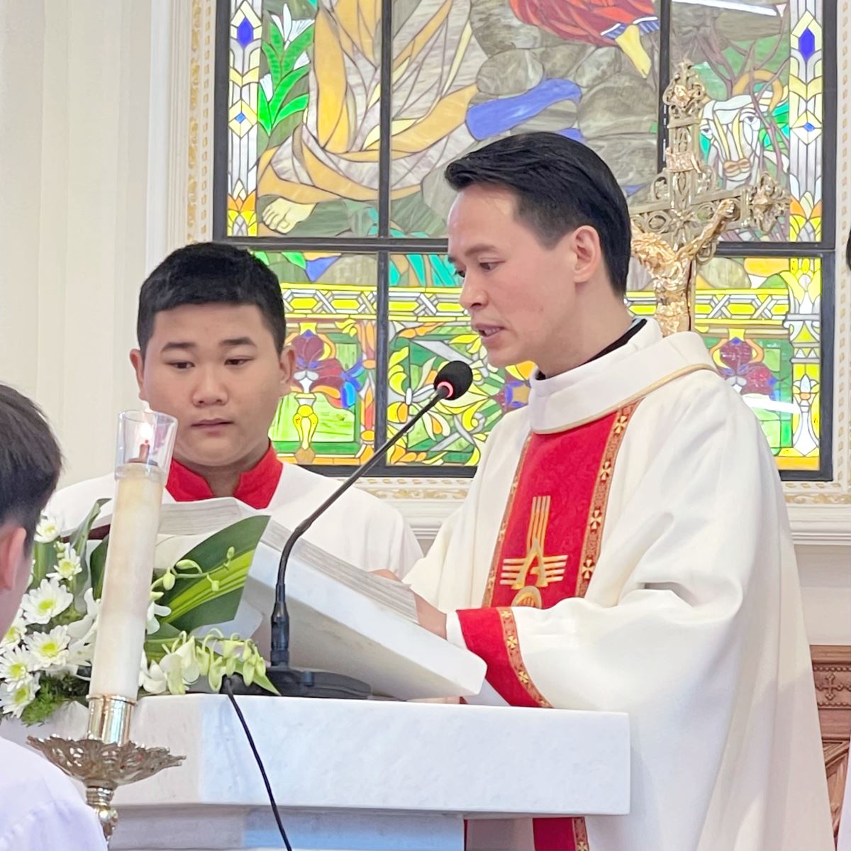 Thánh lễ do Cha phó đặc trách Giuse Nguyễn Ánh Ngọc chủ tế, cùng sự hiện diện của Hội đồng Giáo xứ, Ban Hành giáo, quý Giáo lý viên, Huynh trưởng và đông đảo cộng đoàn dân Chúa. Đặc biệt, sự tham dự của quý Thầy Cô đang giảng dạy tại các trường công lập trong khu vực giáo xứ đã làm cho bầu khí Thánh lễ thêm phần trang trọng và chan chứa nghĩa tình. Đây cũng là nhịp cầu gặp gỡ giữa Giáo hội và những nhà giáo đang tận tâm vun trồng tri thức và nhân cách cho các em học sinh.
