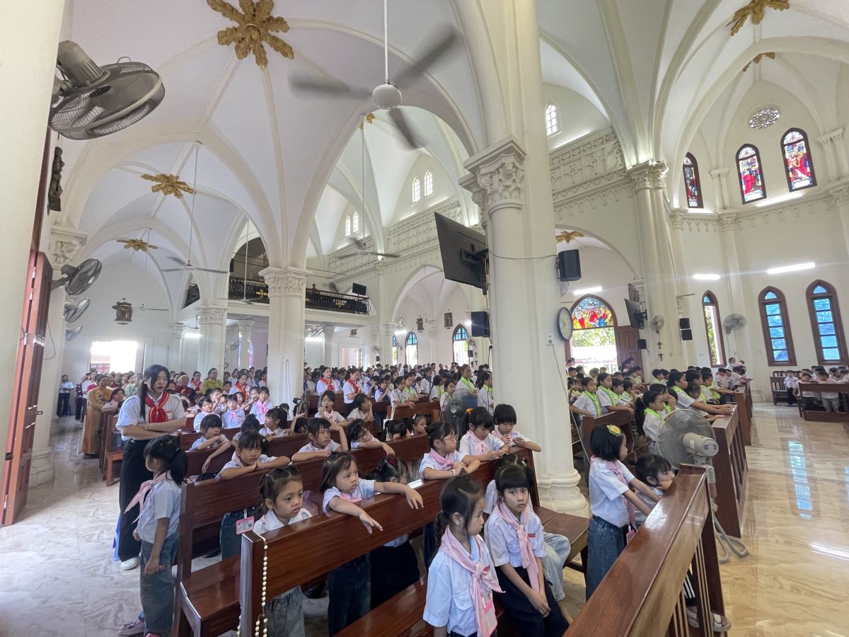 Ngay sau đó, các em cùng cộng đoàn bước vào Thánh lễ, hiệp dâng lời chúc tụng Thiên Chúa và cầu xin ơn lành cho mùa hè tràn đầy niềm vui và bình an.