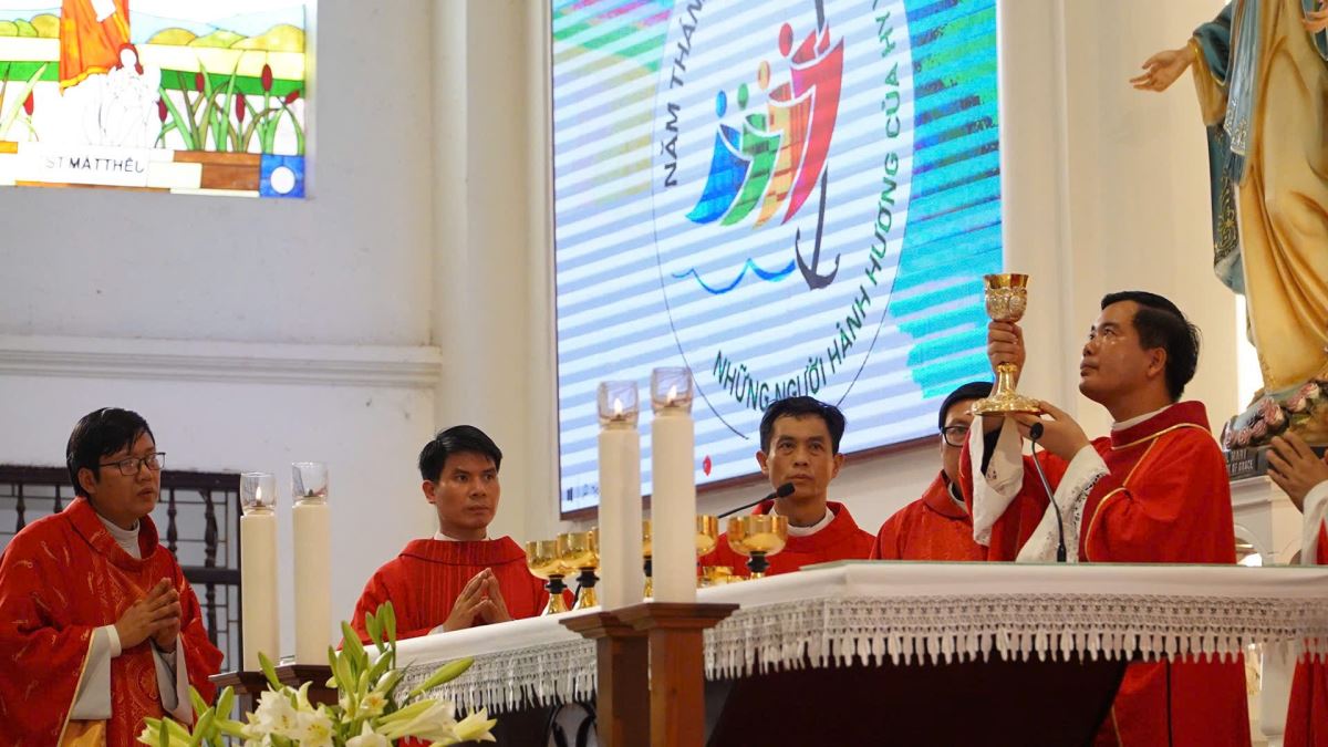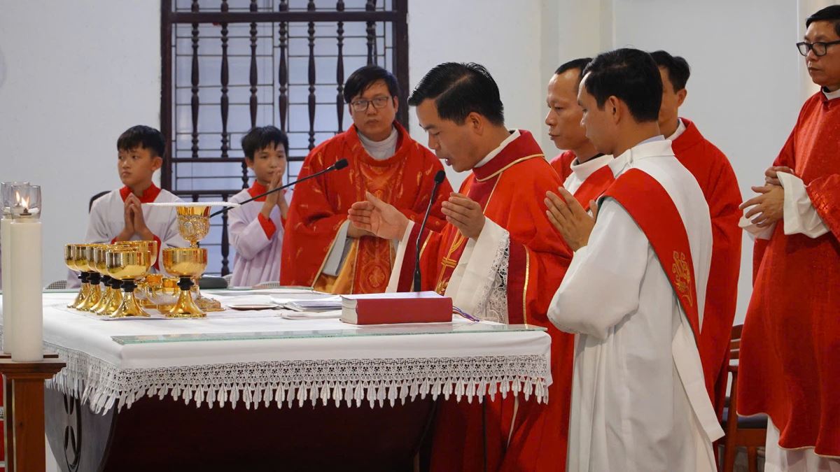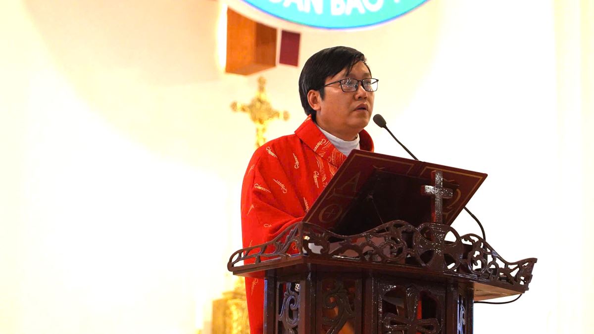 Giảng trong Thánh lễ, khởi đi từ Tin Mừng theo Thánh Gioan (Ga 17, 20-26), cha Anrê Bùi Văn Mão đã chia sẻ về “Sự hiệp nhất nên một”. Ngài mời gọi mỗi người hãy luôn biết sống mầu nhiệm tự hủy và yêu thương người khác, cùng nhau xây dựng “tình hiệp nhất” trong môi trường mình sống: Vợ chồng biết nhường nhịn nhau, con cái ngoan ngoãn vâng lời cha mẹ, anh chị em biết đoàn kết, yêu thương, đùm bọc nhau; mọi người hãy biết loại bỏ những kỳ thị, ghen ghét, mỗi người hãy khiêm tốn trong lời nói, việc làm và biết liên kết mật thiết với nhau trong Giáo hội cũng như ngoài xã hội để mọi người được hiệp nhất trong tình yêu Thiên Chúa.