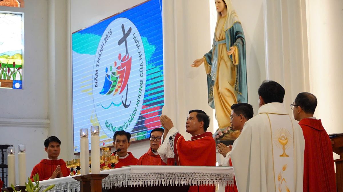 Sau nghi thức hành hương là thánh lễ do cha Phêrô Nguyễn Công Lục chủ tế. Cùng đồng tế có quý Cha trong Giáo hạt. Hiệp dâng Thánh lễ có quý thầy Phó tế, quý Dì và đông đảo bà con giáo dân.