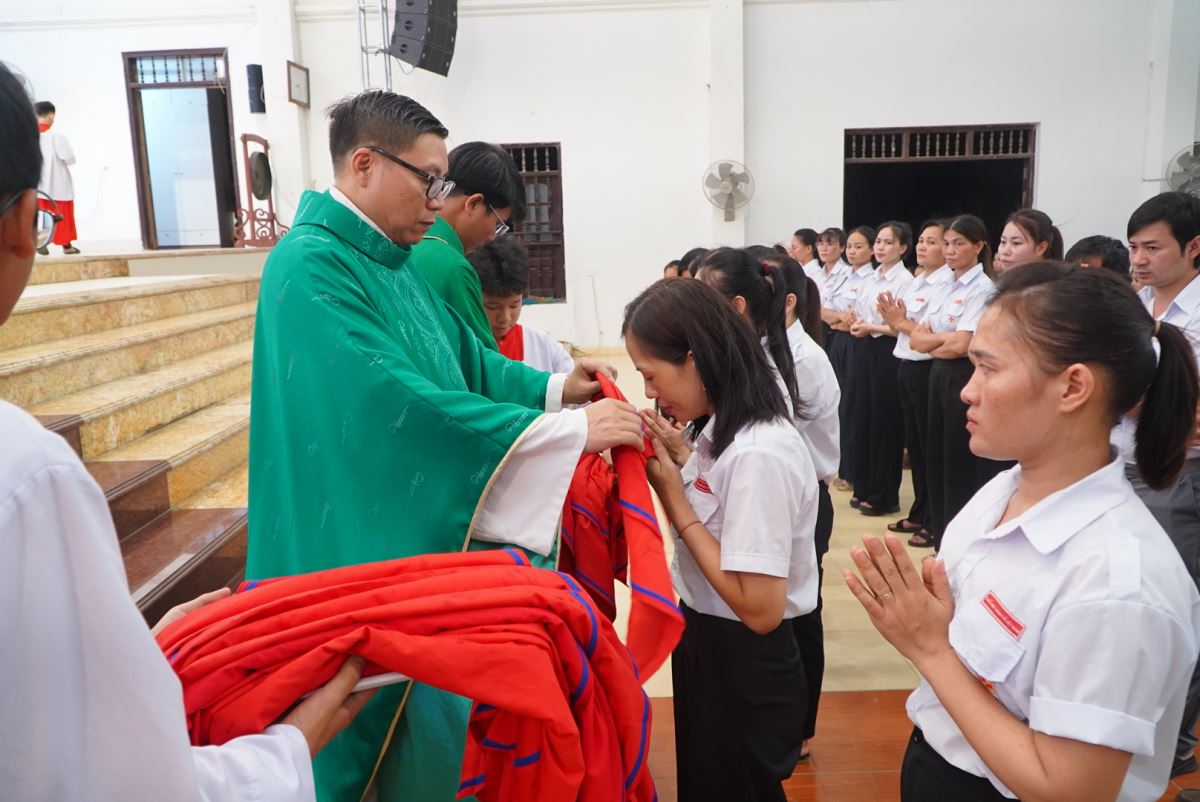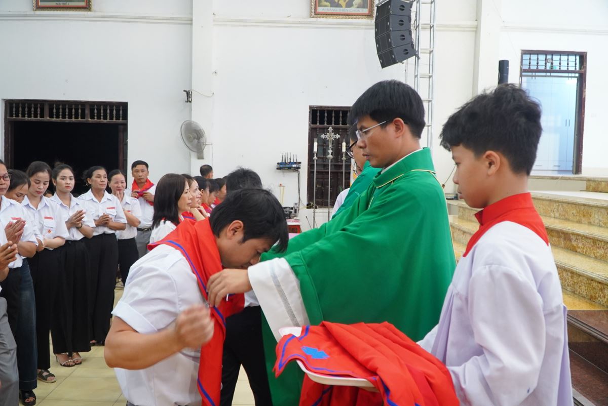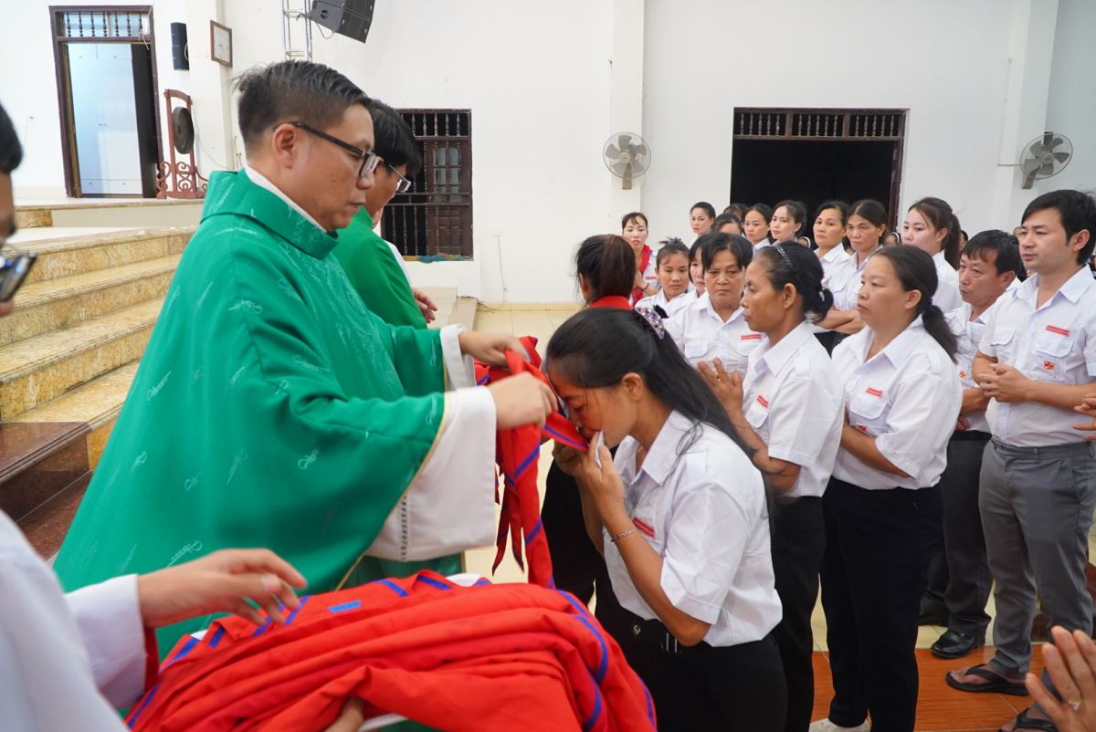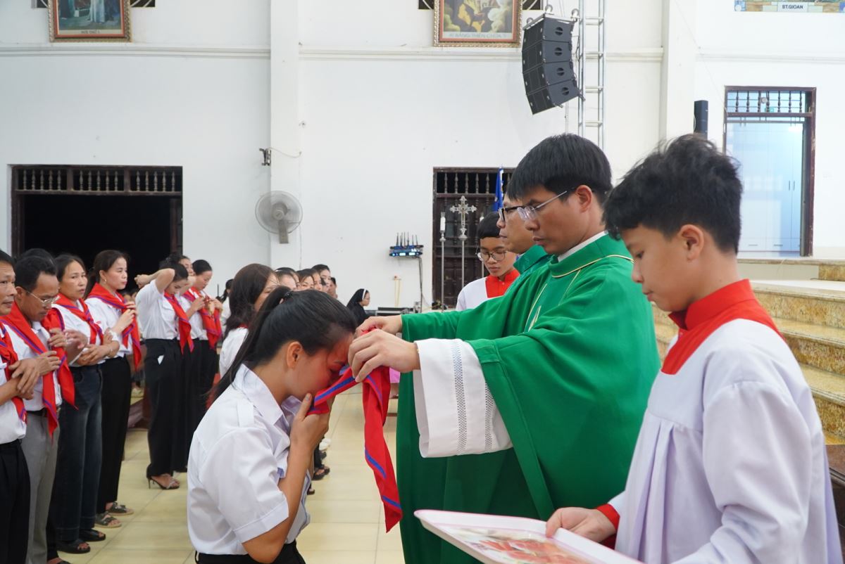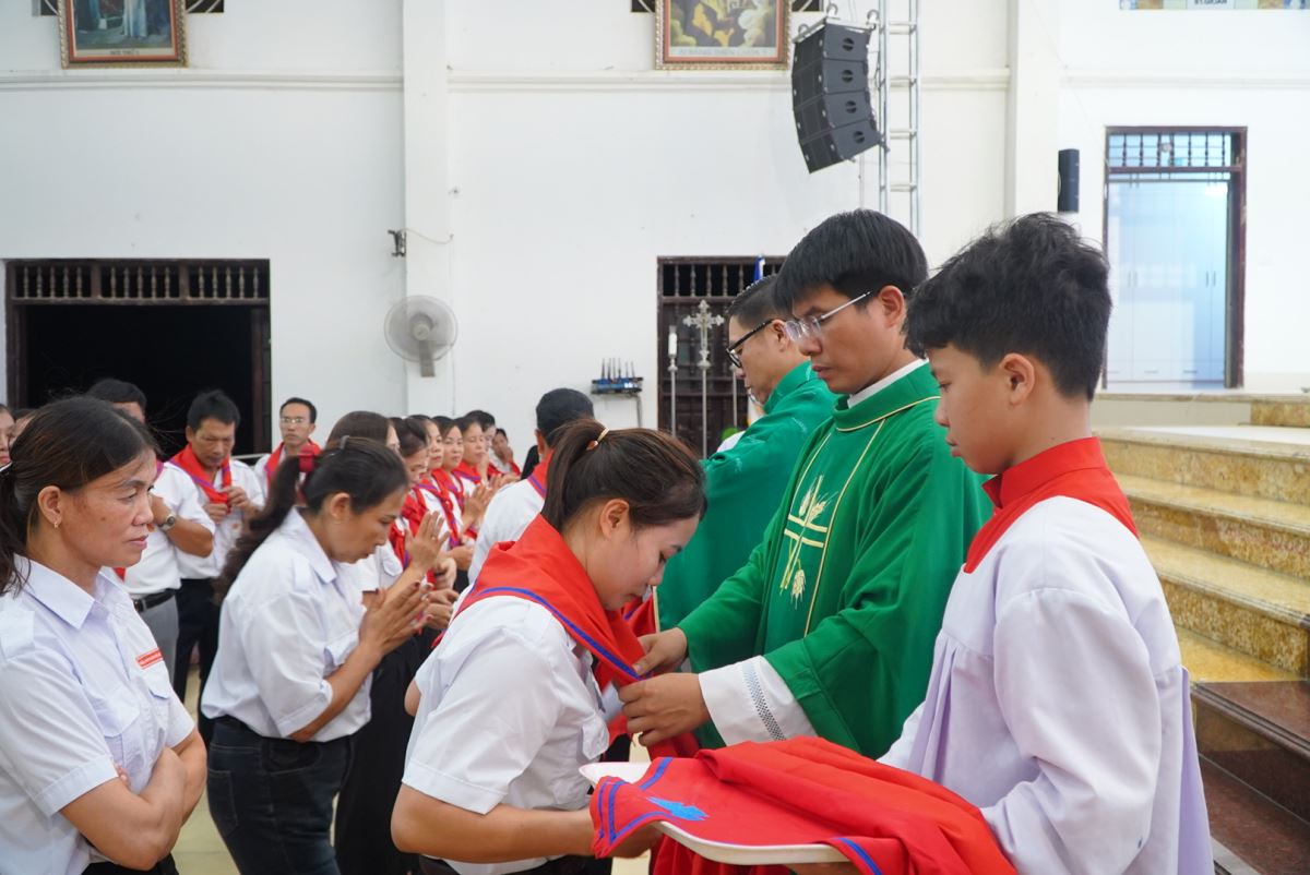 Từng người lãnh nhận nghi thức đặt tay chúc lành của quý Cha, rồi trang nghiêm tiến lên nhận khăn Trợ tá và chứng chỉ giáo lý viên cấp I. Từ giây phút ấy, họ chính thức trở thành những tân giáo lý viên – những “người thợ gặt” mới được sai đi vào cánh đồng truyền giáo nơi quê hương mình.
